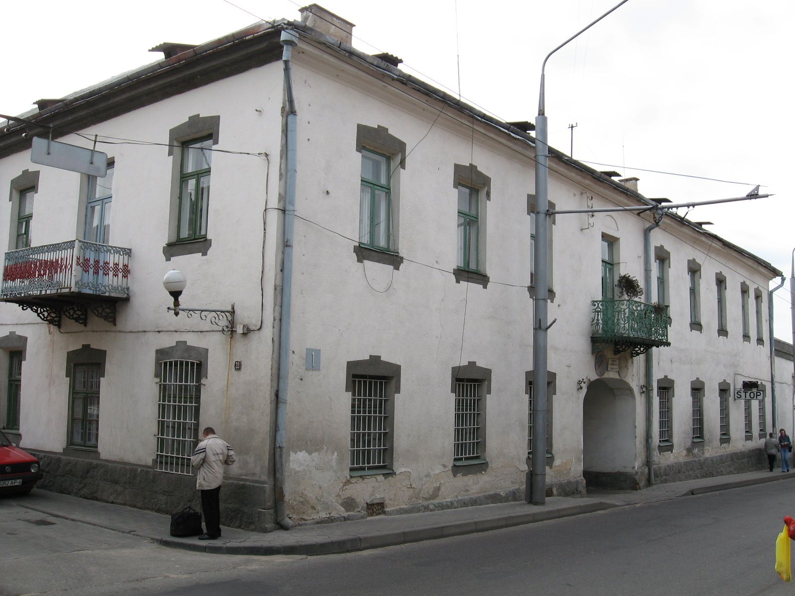 Асноўная частка будынкаў размешчана ў двары. Фасадам на вул. Кірава і Гараднічанскую арыентаваны двухпавярховы Г-падобны ў плане будынак. Фасады патынкаваныя. У крыле па вул. Кірава размешчана праезная арка. Над аркай на другім паверсе балкон з ажурнай агароджай і на фігурных літых кранштэйнах. Яшчэ адзін балкон размешчаны на фасадзе па вул. Гараднічанскай, ажурная агароджа іншага ўзору. Унутры захавалася ажурная агароджа лесвіцы.