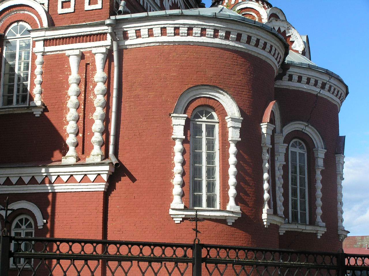 Сабор уяўлае сабой крыжовы ў плане дзевяцiкупальны трохапсiдны храм. Цэнтральны кубападобны двух'ярусны аб'ём завершаны чатырохсхiльным дахам з цылiндрычным светлавым барабанам i цыбулепадобным купалам. Па вуглах даху размешчаны меншыя глухія цыліндрычныя барабаны з купаламi. Над апсідай і бакавымі прыдзеламі знаходзяцца аналагічныя барабаны з галоўкамі. Фасады члянёны арачнымі і ў бакавых прыдзелах прамавугольнымі аконнымі праёмамі. Пластыка фасадаў вельмі выразная, насычаная дэкаратыўнымі элементамі стылізаванымі пад формы маскоўскага царкоўнага дойлідства 17 ст.