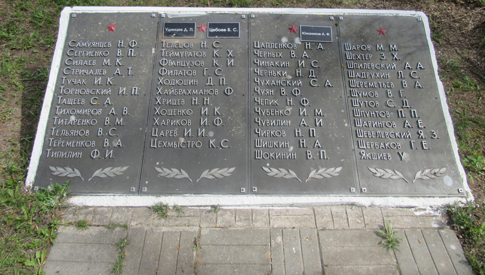 У 1958 г. на брацкай магіле ўсталяваны помнік - бетонны абеліск у выглядзе мураванай калоны з металічнай зоркай. На тумбе надпіс: “Вечная слава и память погибшим сынам нашей Родины. 1941-1944 гг.”. З двух бакоў – мемарыяльныя пліты з прозвішчамі загінуўшых.