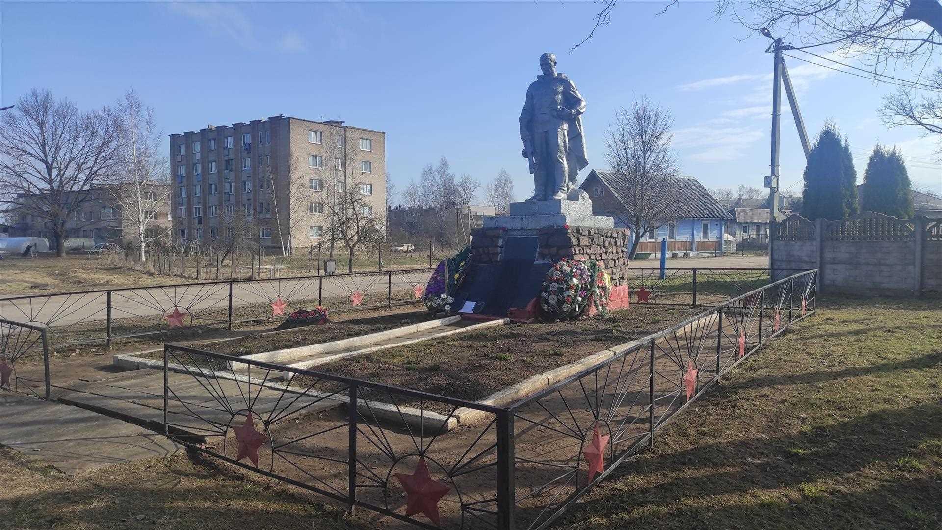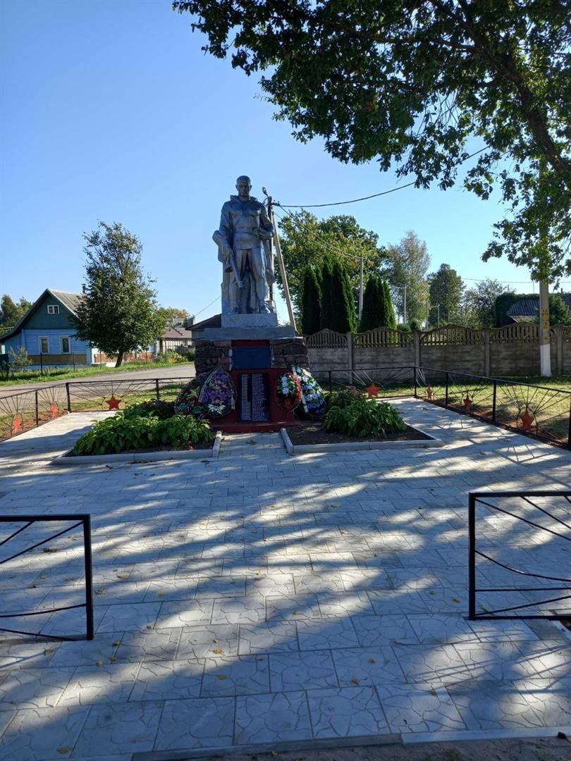 У 1964 г. на брацкай магіле быў устаноўлены помнік - скульптура воіна з аўтаматам на вялікім пастаменце, абкладзеным дзікім каменем. На пастаменце выбіты надпіс: “Воинам советской армии и партизанам, павшим в боях за нашу Родину”. Таксама тут усталявана ахоўная дошка гісторыка-культурнай каштоўнасці.