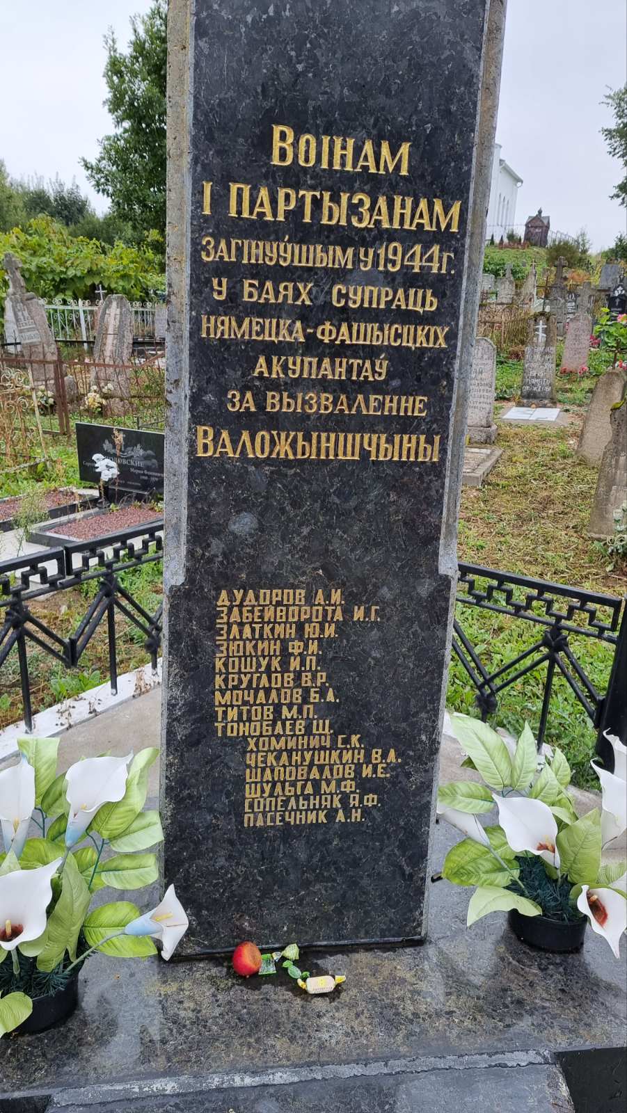 Пахаваны 230 воінаў. Сярод іх - воіны 88-й, 192-й, 220-й стралковых дывізій; 142-й артылерыйскай брыгады; 14-га і 160-га санітарных батальёнаў, а таксама 14 партызан злучэння Баранавіцкай вобласці, якія загінулі ў 1944 г.