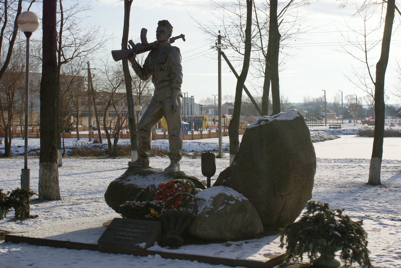 У 1964 г. на магіле пастаўлены помнік, які ўяўляе сабой скульптуры двух воінаў і чатыры пліты з імёнамі загінуўшых воінаў. У цэнтры ўзвышаецца абеліск з выявай грэчаскай багіні перамогі - Нікі.