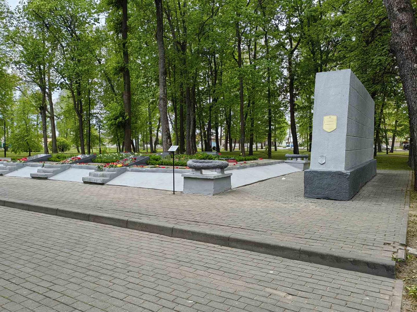 У 1970 г. на магіле ўстаноўлены пліты, побач - стэла з барэльефам 5 воінаў і скульптура жанчыны ў жалобе.