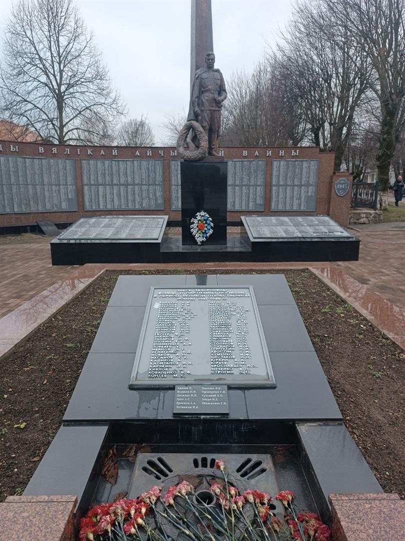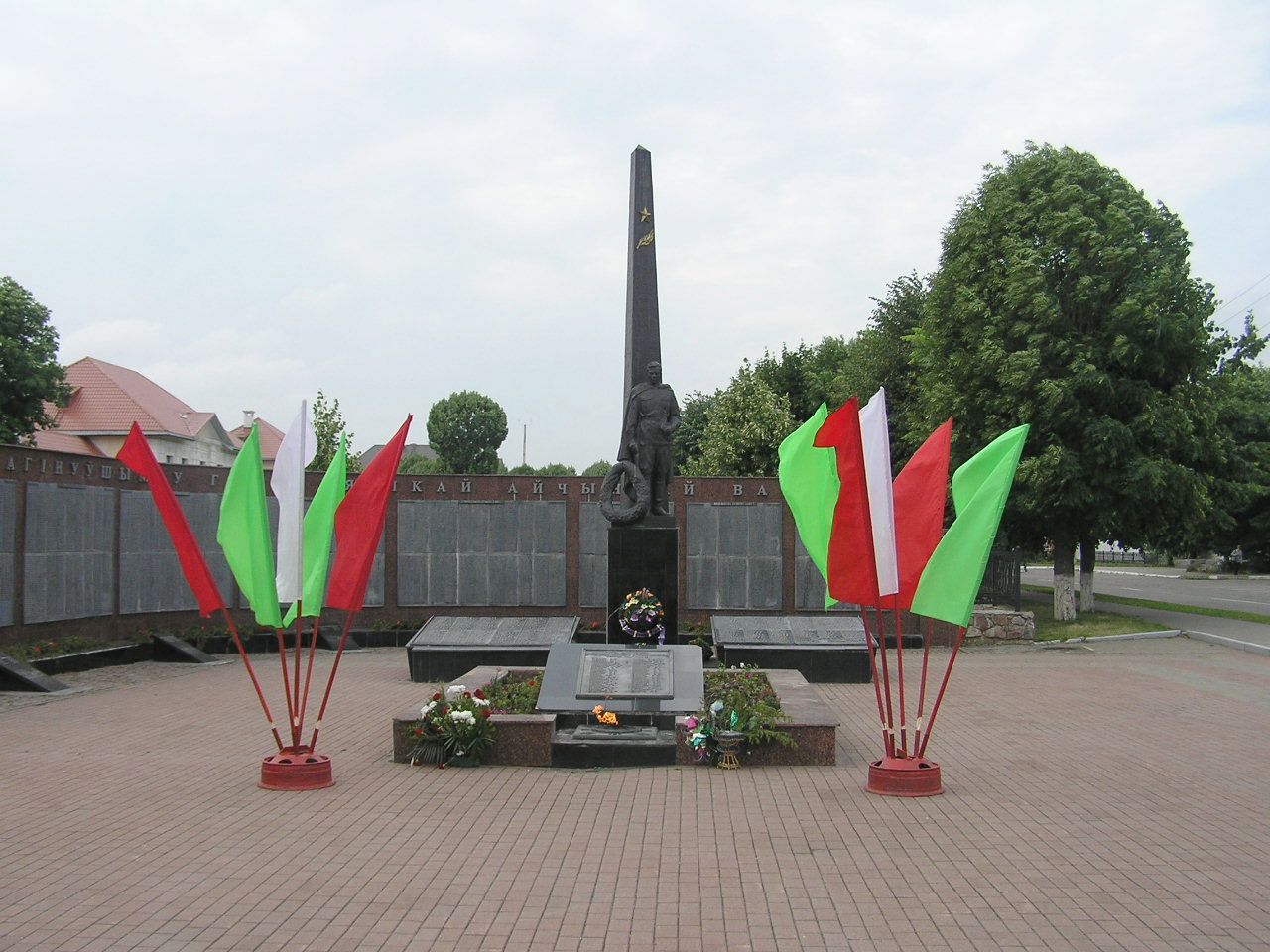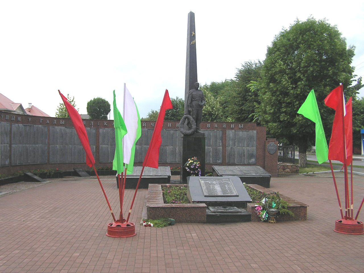 Брацкая магіла знаходзіцца ў скверы па вул. Савецкай. Тут пахаваны 152 воіна, якія загінулі ў баях супраць нямецка-фашысцкіх захопнікаў у 1941 г. і ў чэрвені 1944 г., у тым ліку 10 афіцэраў. Сярод пахаваных - воіны 252-га, 329-га стралковых палкоў 70-й стралковай дывізіі 33-й арміі, 566-га стралковага палка 153-й стралковай дывізіі 49-й арміі 2-га Беларускага фронту. Пакуль выяўлена толькі 66 прозвішчаў загінуўшых.