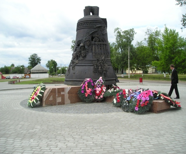 У 1957 г. пастаўлены помнік - скульптура воіна з вянком і каскай у руках. У 2005 г. помнік быў рэканструяваны. Новы помнік зроблены ў выглядзе вялізнага звона з разломам.