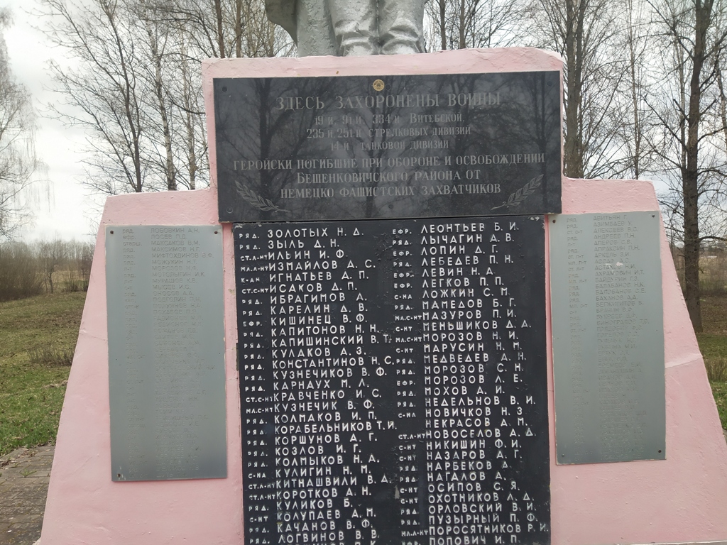Брацкая магіла знаходзіцца на паўночнай ускраіне вёскі. У ёй пахаваны 501 воін Чырвонай Арміі, якія загінулі пры абароне і вызваленні Бешанковіцкага раёна, і 1 удзельнік партызанскага руху.