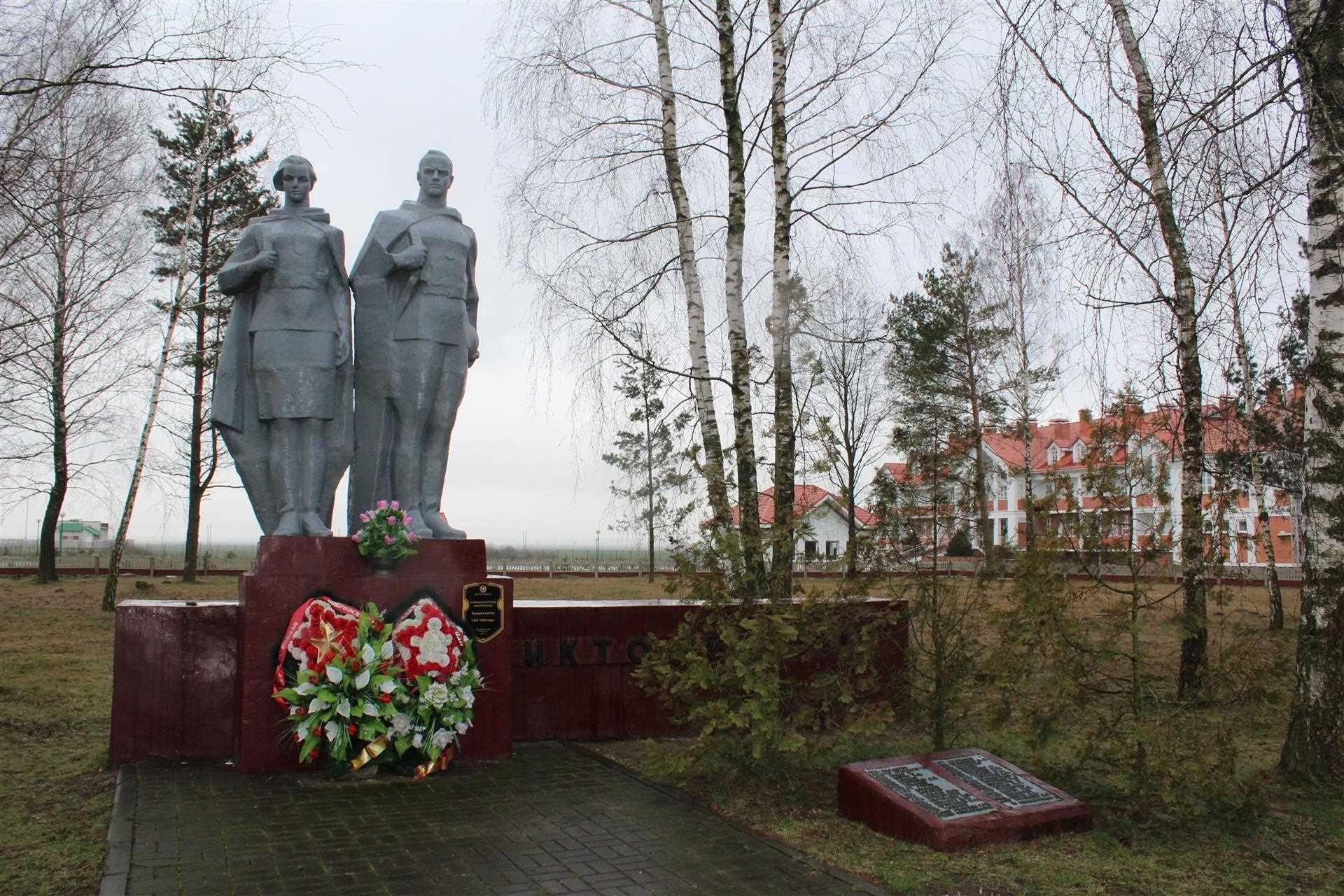 У 1949 г. на магіле пастаўлены абеліск. У 1975 г. абеліск быў зменены на скульптурную кампазіцыю - выявы воінаў (мужчыны і жанчыны), размешчаныя на п'едыстале. Каля кампазіцыі знаходзіцца пліта з пералікам загінуўшых (35 пайменна і 11 невядома).