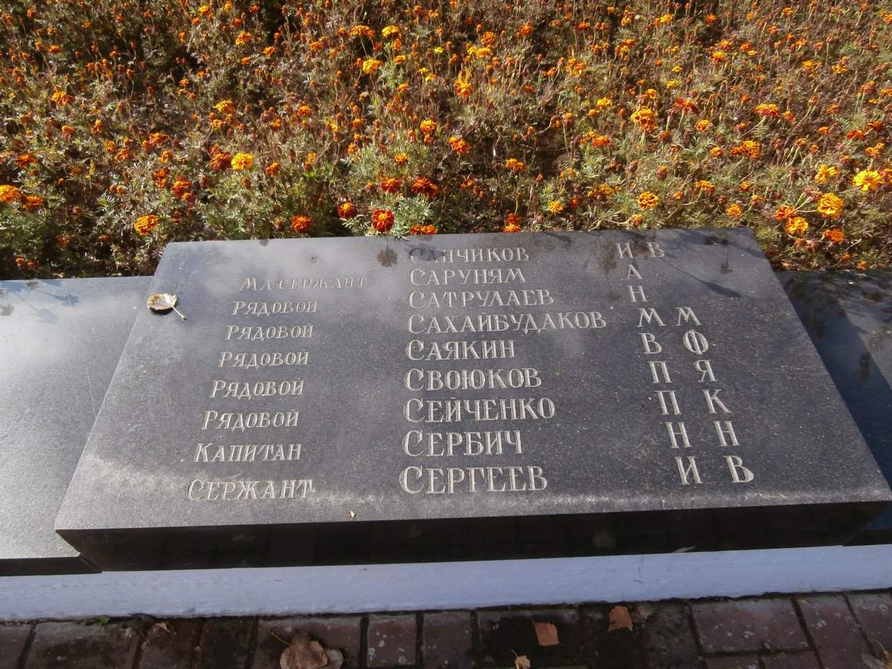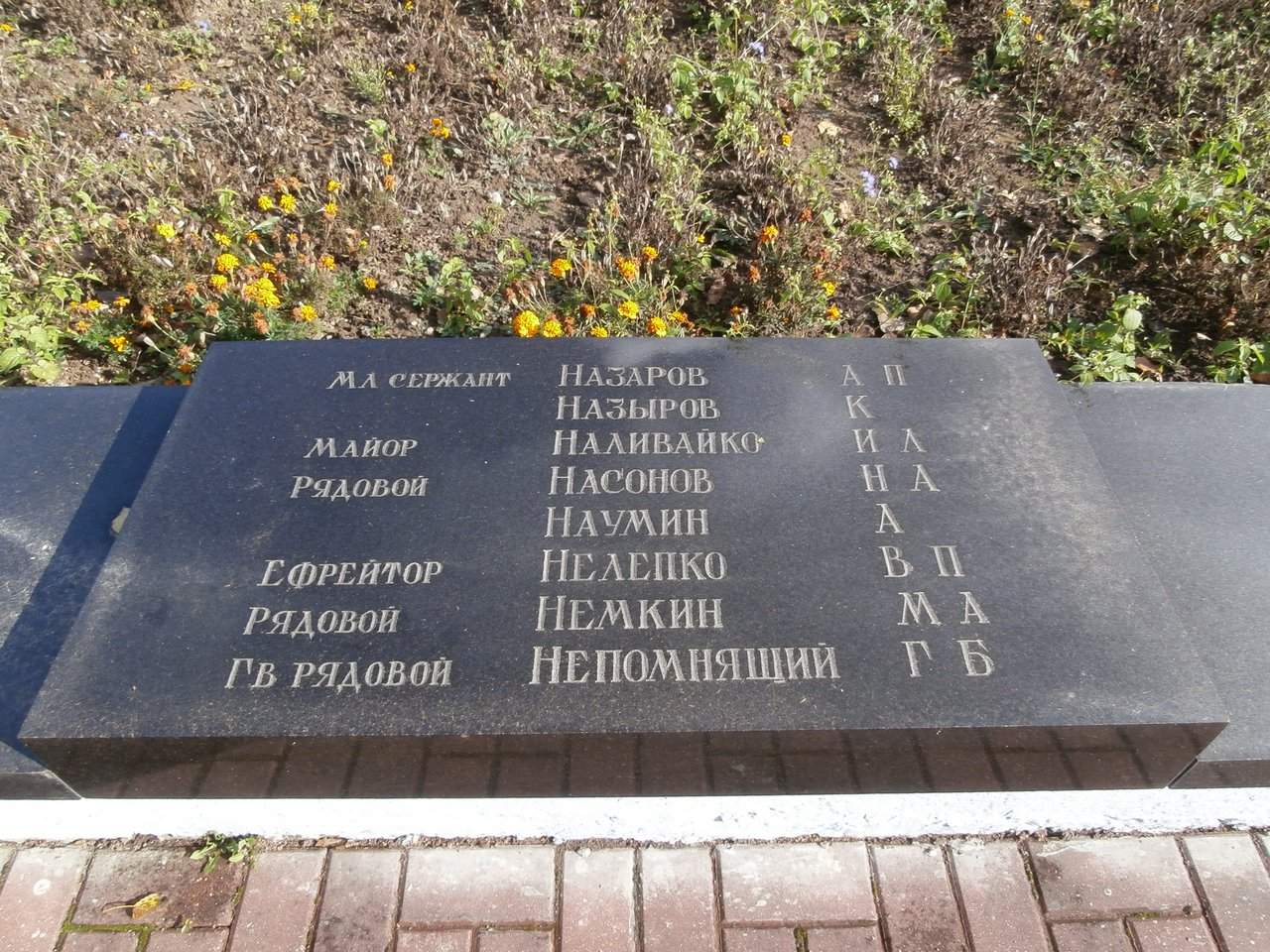 У 1984 г. на ўшанаванне памяці загінуўшых быў створаны мемарыяльны комплекс (скульпт. К. Сарока, архіт. У. Кузьменка). Мемарыял уключае 3 брацкія магілы, скульптуру воіна са звязкай гранат, манументальную браму з барэльефнымі выявамі, што адлюстроўваюць эпізоды баёў. Уздоўж брацкіх магіл змешчаны мемарыяльныя гранітныя пліты з імёнамі загінуўшых.