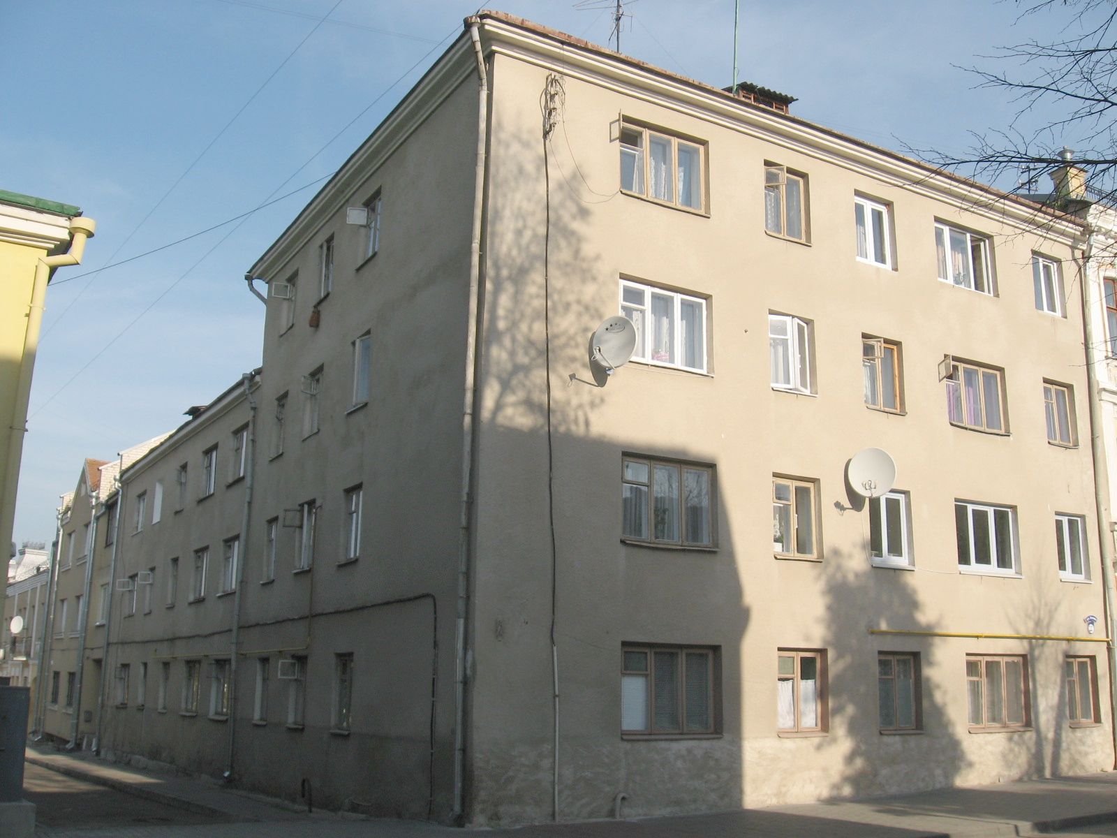 Будынак складаны ў плане, складаецца з двух Г-падобных аб'ёмаў. Частка будынка па вул. Замкавай перабудавана. Асноўны аб'ём чатырохпавярховы з сутарэннямі, бакавое крыло трохпавярховае. Фасады патынкаваныя, гладкія, члянёныя прамавугольнымі аконнымі праёмамі без дэкору. Завершаны карнізам.