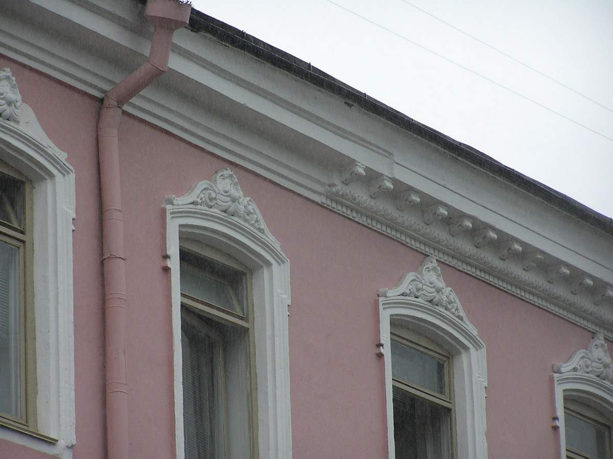 Трохпавярховы прамавугольны ў плане будынак накрыты двухсхільным дахам быў пабудаваны ў стылі эклектыка. Тарцовымі фасадамі далучаны да суседніх дамоў № 9 і 13. Галоўны фасад сіметрычнай кампазіцыі. Бакавыя часткі фасада вылучаны канеліраванымі пілястрамі. Паверхі падзелены цягамі.