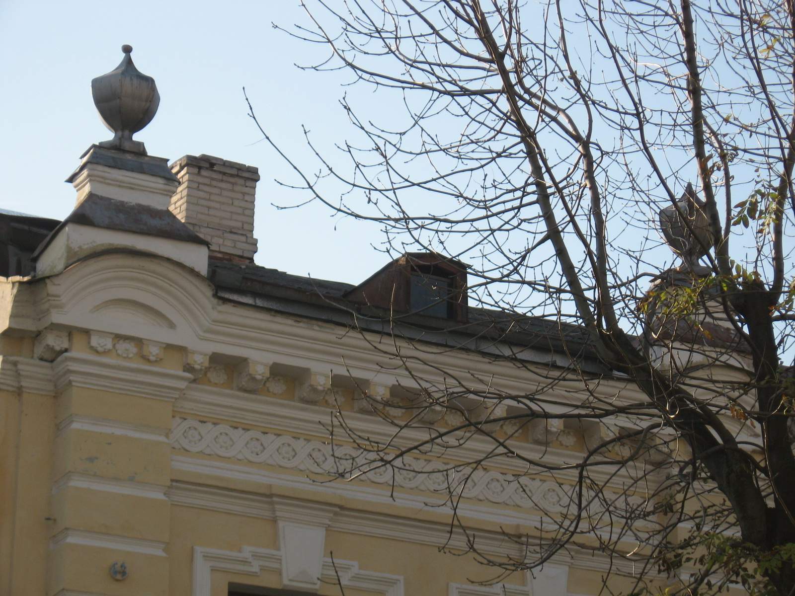 Будынак двухпавярховы, прамавугольны ў плане. Цэнтральная частка галоўнага фасада вылучана неглыбокім рызалітам, завершаным фігурным атыкам з дэкаратыўнымі вазамі на пастаментах. У рызаліце на першым паверсе два арачныя праёмы. У праёме з заходняга боку захаваліся філянговыя аздобленыя разьбой двухстворкавыя дзверы. Праём з усходняга боку замураваны, на яго месцы зроблены аконны праём. Бакавыя часткі фасада вылучаны руставанымі пілястрамі, якія таксама завершаны скругленымі франтончыкамі і дэкаратыўнымі вазамі на пастаментах. Пластыка фасада насычаная. Паверхі падзелены прафіліраванай цягай.