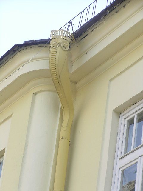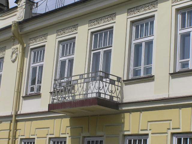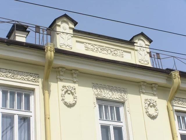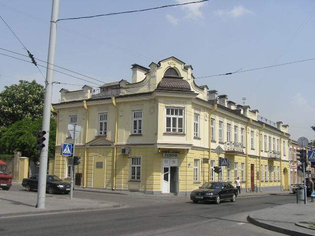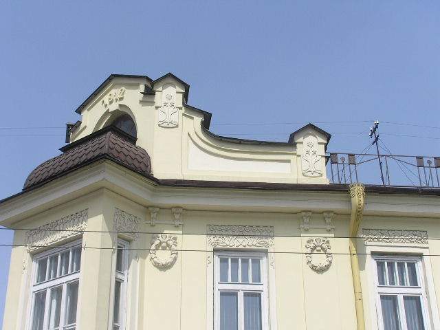 Будынак двухпавярховы з сутарэннямi прамавугольны ў плане накрыты вальмавым дахам. Фасады патынкаваныя. Асноўны акцэнт зроблены на вуглавую зрэзаную часку, завершаную фігурным складанага абрысу франтонам. Франтон дэкарыраваны пілястрамі, філёнгамі, ляпнінай. Тымпан прарэзаны паўцыркульнай люкарнай з замковым каменем. Над люкарнай дата - 1912. На ўзроўні другога паверха вуглавая частка вылучана прамавугольным у плане эркерам, завершаным фiгурным шлемападобным купалам. Фасады вертыкальна раскрапаваны лапаткамі і ў завяршэнні атыкамі. Прамыя атыкі фланкіраваны слупкамі, аздоблены філёнгамі з ляпным дэкорам. Плоскасці лапатак дэкарыраваны ляпнымі вянкамі, дэкаратыўнымі ляпнымі кранштэйнамі.