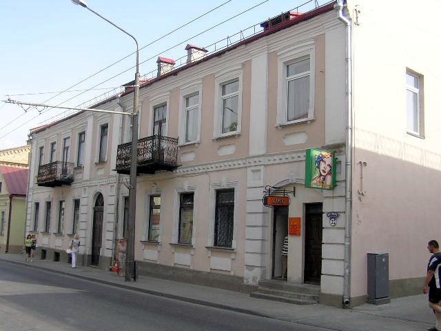 Будынак пабудаваны ў 1900 г. Гэта быў мураваны двухпавярховы дом, крыты дахоўкай. Належаў Л. Фанішэўскаму. Акрамя жылых кватэр у доме размяшчалася лаўка каланіяльных тавараў. У пачатку 1920-х г. чарапічны дах быў заменены на жалезны. Па звестках на 1924 г. на першым паверсе знаходзіліся магазін і абутковая майстэрня, на другім паверсе -- жылыя памяшканні.
