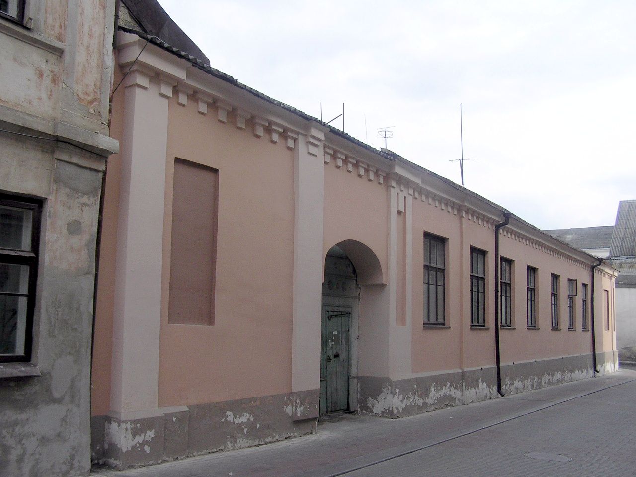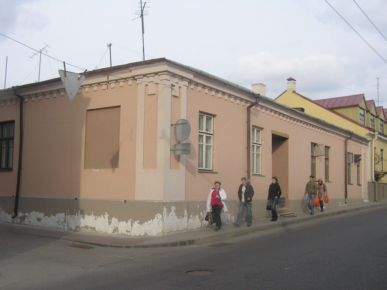 Да канца XIX ст. на месцы будынка існавала толькі драўляная забудова, якая неаднаразова цярпела ад пажараў. Дом належаў Астрагорскім, пасля Квятам. У 1894 г. у будынку размяшчаўся яўрэйскі пансіён для дзяўчат, які належаў Астрагорскай. У міжваенны час размяшчаліся аддзяленні гарадскога шпіталя, узведзеныя па праграме амерыканскага прэзідэнта Гувера. На 1910 г. у доме размяшчалася друкарня Лейбы Лапіна. Будынак аднапавярховы Г-падобны ў плане накрыты вальмавым дахам. Фасады патынкаванныя гладкія. Вуглы будынка акцэнтаваны філянговымі лапаткамі. На фасадзе па вул. Урыцкага лапаткі фланкіруюць арачны праезд у двор. Захавалася металічная брама з коўкай. Фасадныя плоскасці прарэзаны прамавугольнымі аконнымі праёмамі без дэкора, завершаны карнізам з сухарыкамі.