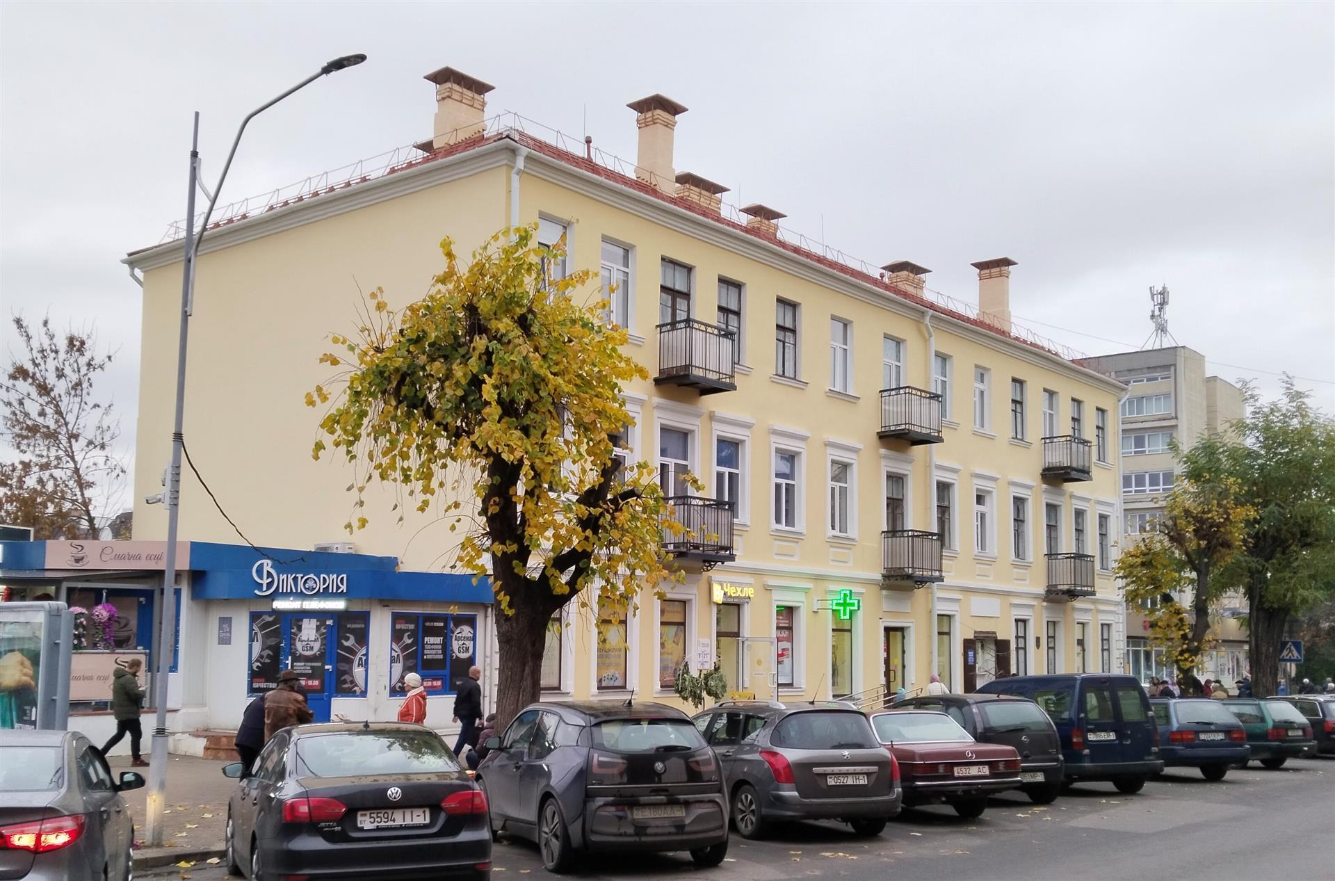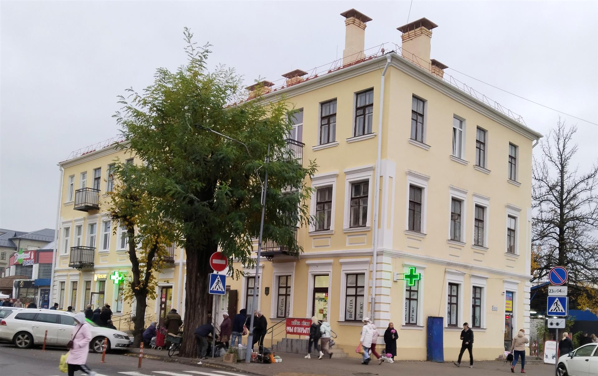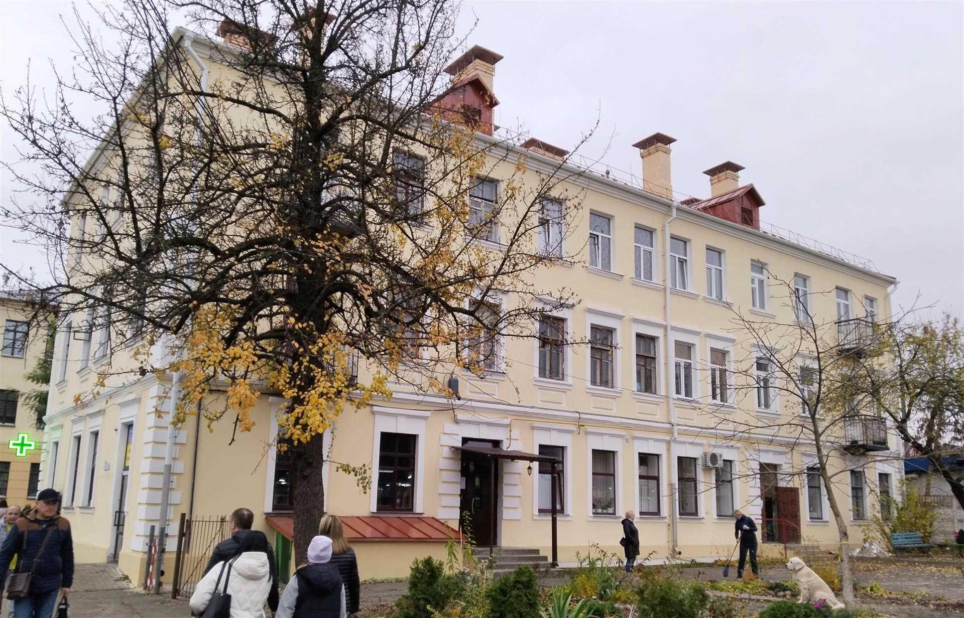 Будынак па сённяшняй вуліцы Пушкінскай пабудаваны да Першай сусветнай вайны нейкім Вехманам, магчыма як прыбытковы. Вядома, што частку першага паверха арандаваў урач Свечнікаў Д.І. - унутраныя хваробы, горла, вушы, нос. У міжваенны час належыў Вехман Ірэне і Зоф'і. Выкарыстоўваўся па ранейшаму ў якасці прыбытковага дома, адказнай за прапіску была Вехман Зоф'я. У будынку змяшчаліся: аптэка Ежы Саскага, дамская канфекцыя Машы Зэдэрман, радыёабсталяванне Г.П. Мазуркевіча, тэхнічнае бюро Пятра Мазуркевіча.