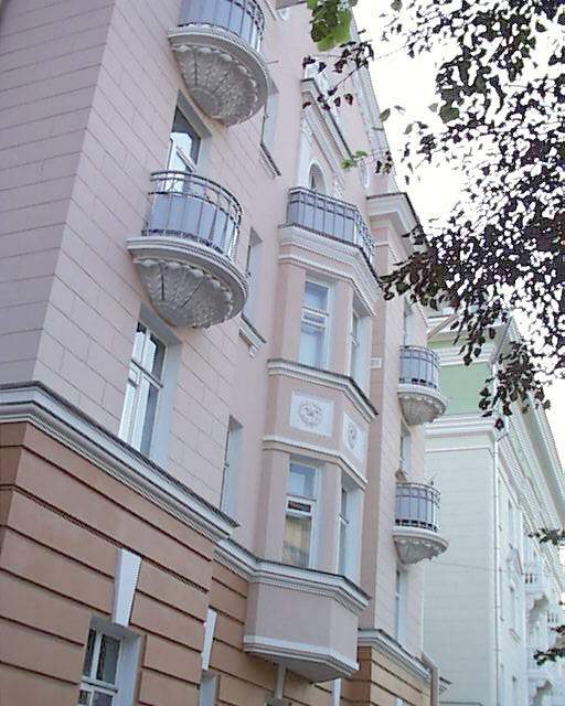 Будынак уяўляе сабой чатырохпавярховы аб’ём прамавугольнага плана. Ён злучаны з суседнім домам №14 парталам вышынёй у два з паловай паверхі з каланадай і імітацыяй трыумфальнай аркі, на якой размешчаны круглыя медальёны з рэльефнымі снапамі каласоў. Праз арку, якая вядзеў двор, дом злучаецца з наступным па парадкаваму нумару - №14.