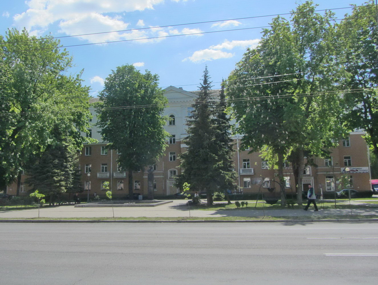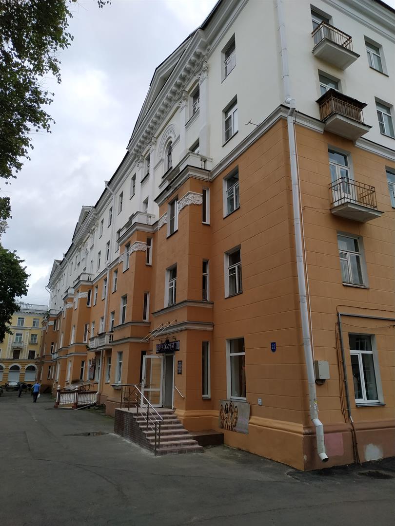 Пяціпавярховы прамавугольны ў плане будынак. Размешчаны з водступам ад чырвонай лініі забудовы. Галоўны фасад мае сіметрычную кампазіцыю. Акцэнтаваны 3 трохвугольнымі франтонамі, апаясанымі прафіляванымі карнізамі, ніжні карніз на кранштэйнах.