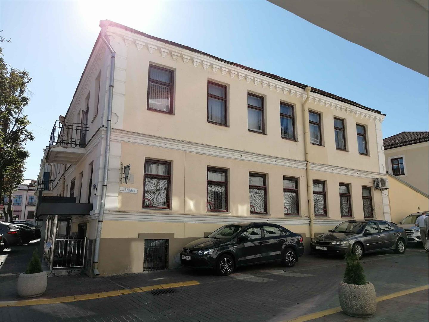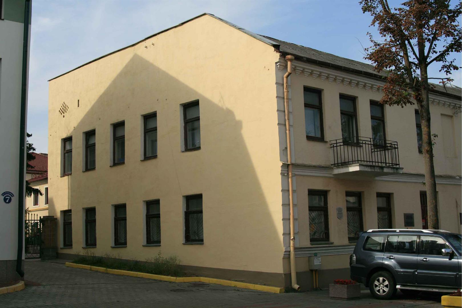 Будынак двухпавярховы з цокальным паверхам П-падобны ў плане накрыты вальмавым дахам. Фасады патынкаваныя. Фасады, арыентаваныя на вул. Тэльмана і Урыцкага, маюць падобнае архітэктурнае рашэнне. Па гарызанталі фасады падзелены прафіляванымі міжпаверхавай і пад вокнамі першага паверха цягамі. Вуглы будынка на ўзроўні першага і другога паверхаў акцэнтаваны руставанымi лапаткамi.