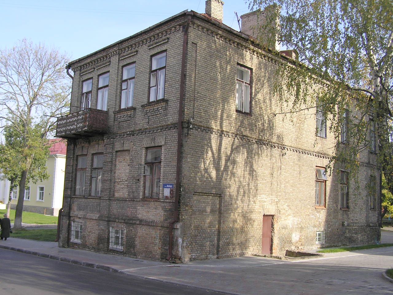Будынак двухпавярховы з цокальным паверхам, трапецападобны ў плане, накрыты вальмавым трохсхільным дахам. Фасады нетынкаваныя. Галоўны фасад, арыентаваны на вуліцу, крапаваны лапаткамі, на ўзроўні першага паверха муроўка лапатак імітуе руст.