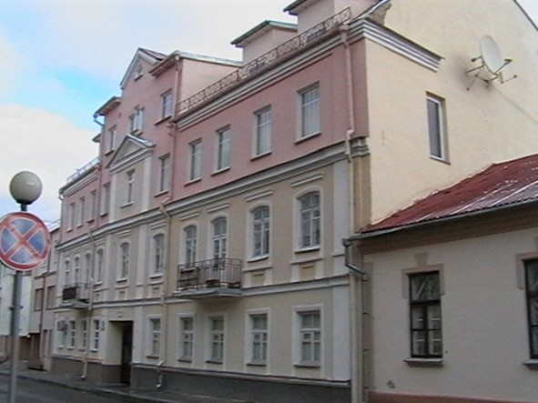 Кампазіцыя галоўнага фасада сіметрычная, развіта па вертыкалі надбудованым 3-м паверхам з мезанінам на 3 аконныя праёмы. В кампазіцыі фасада архітэктурнымі сродкамі выяўлены этапы будаўніцтва. Гістарычны фасад 2-хпавярховага з мезанінам будынка выдзелены колерам. Сцены фасада гладкія, члянёны міжпавярховай цягай, аконнымі праёмамі (прамавугольнымі на 1-м і з лучковай перамычкай на 2-м паверсе) з ліштвамі. Цэнтральная частка фасада выдзелена рызалітам з лапаткамі, праездам. Вуглы фасада на 2 паверхі выдзелены пілястрамі. Балконы 2-га паверха размешчаны сіметрычна.