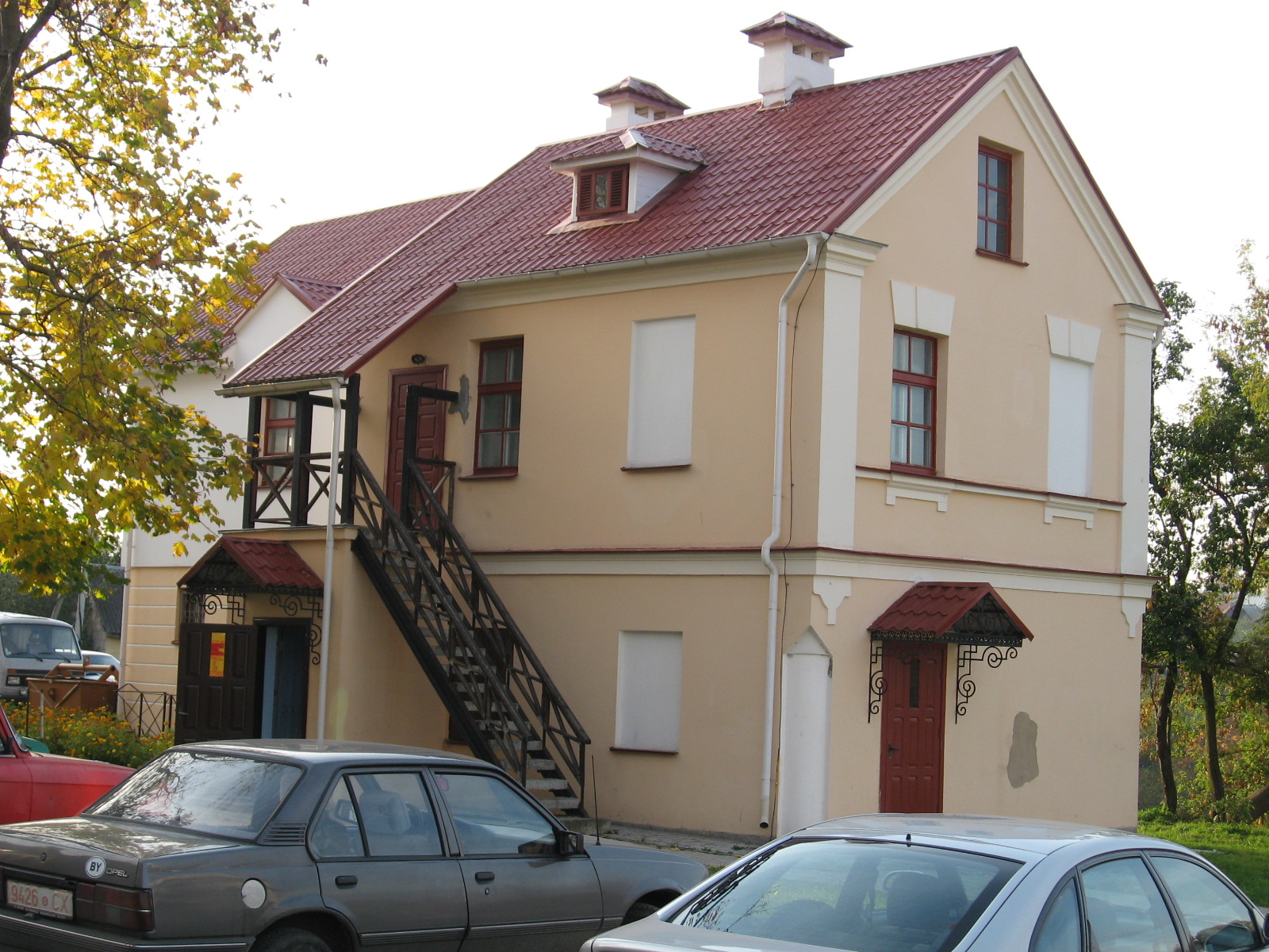 Двухпавярховы прамавугольны ў плане будынак накрыты двухсхільным дахам. З паўднёва-заходняга боку частка будынка прыбудавана пад час рэканструкцыі. Фасады патынкаваныя. Галоўны фасад гістарычнага будынка вырашаны плоска, па гарызанталі падзелены міжпаверхавай цягай, завершаны карнізам. У цэнтры размешчаны ўваходны тамбур, над якім на другім паверсе размешчана невялікая галерэя. Да яе вядзе надворная лесвіца. Прамавугольныя аконныя праёмы (часткова замураваныя) без дэкору. Паўночна-ўсходні тарцовы фасад завершаны двухсхільным шчытом, прарэзаным прамавугольным акном мансарды. Фасадная плоскасць на ўзроўні другога паверха фланкіравана лапаткамі. Паўночна-ўсходні вугал будынка на вышыні першага паверха мае характэрнае для таго перыяду скругленне для бесперашкоднага заезду ў двор экіпажаў. сцяна першага паверха прарэзана дзвярным праёмам, аформленым брылем на ажурных кансолях. На другім паверсе прамавугольныя аконныя праёмы (адзін замураваны) падкрэслены падаконнай цягай з карнізамі, у верхняй частцы -- дэкаратыўнымі перамычкамі з замковым каменем. Паверхі падзелены цягай. Тыльны фасад вырашаны падобна тарцоваму: сцяна першага паверха гладкая, прарэзана прамавугольнымі аконнымі праёмамі без дэкору, Сцяна другога паверха дэкарыравана вуглавымі лапаткамі, падаконнай цягай, перамычкамі з замковым каменем. У цэнтры фасада размешчаны балкон з металічнай агароджай. Фасад падзелены міжпаверхавай цягай, завершаны карнізам.