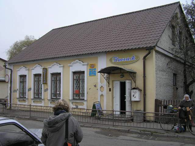 Будынак № 7 па вул. Кастрычніцкай быў пабудаваны ў канцы XIX - пачатку XX стст. з чырвонай цэглы. Прамавугольны ў плане аднасекцыйны дом быў накрыты гонтавым мансардным дахам. Аконныя і дзвярныя праёмы класічнай прамавугольнай формы, на вокнах драўляныя аканіцы. Будынак меў два выхады на вуліцу. Перад кожнымі дзвярыма - высокі драўляны ганак. У цэлым будынак меў строгія, простыя формы.