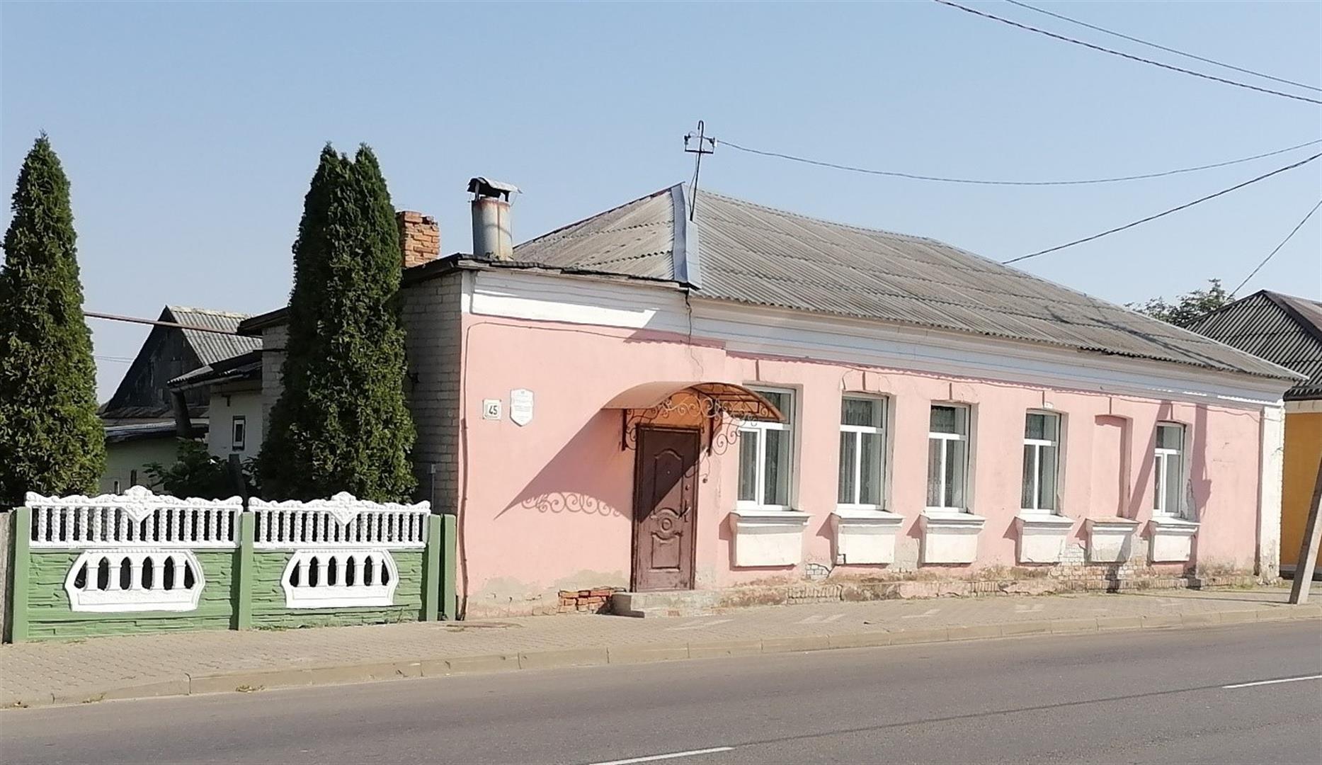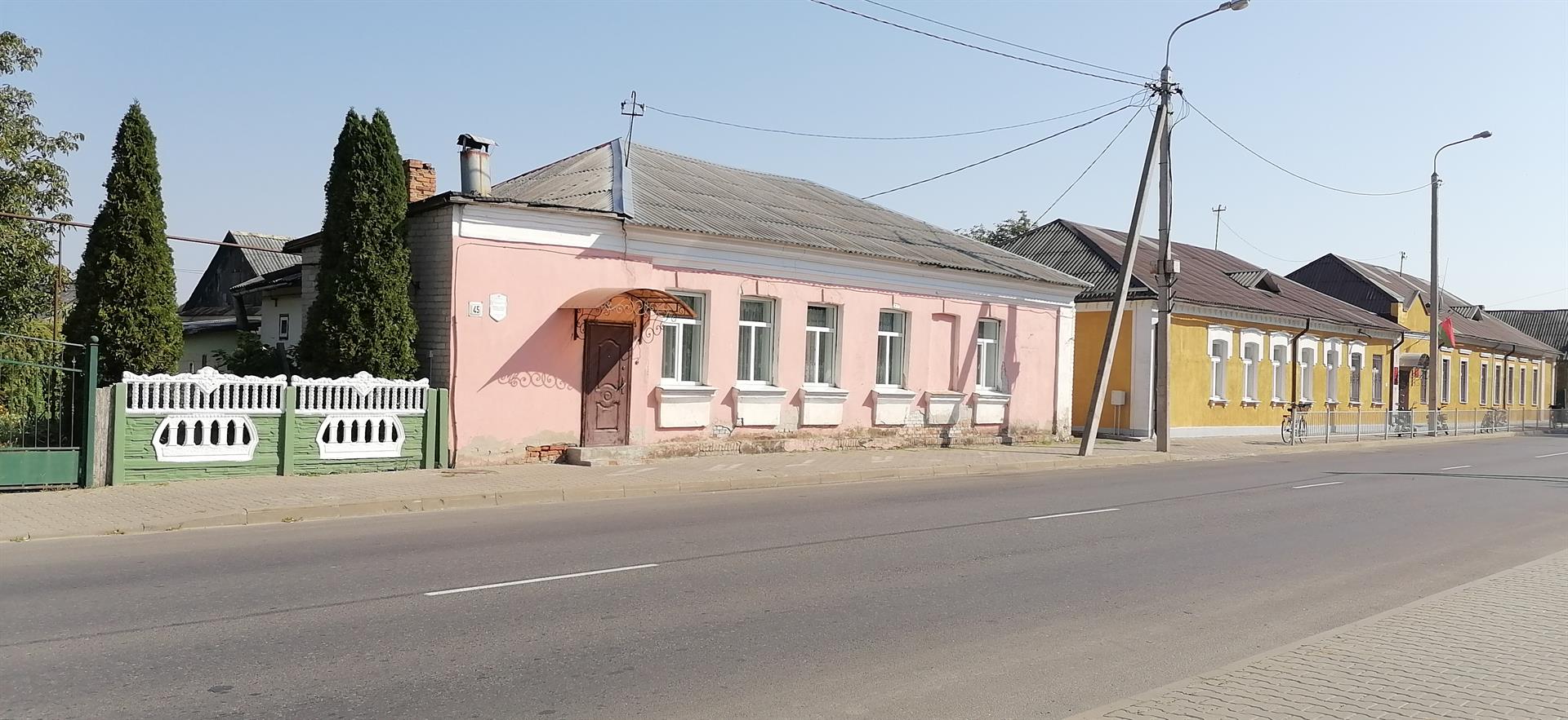 Дом № 45 - аднапавярховы прамавугольны ў плане будынак накрыты вальмавым дахам. Галоўны фасад патынкаваны, члянёны лучковымі аконнымі праёмамі з падаконнымі карнізамі і прамавугольнымі плоскімі філёнгамі. Завершаны фасад прафіляваным карнізам. Бакавы ўсходні фасад перабудаваны з сілікатнай цэглы. Да бакавога заходняга фасада прыбудаваны тамбур.