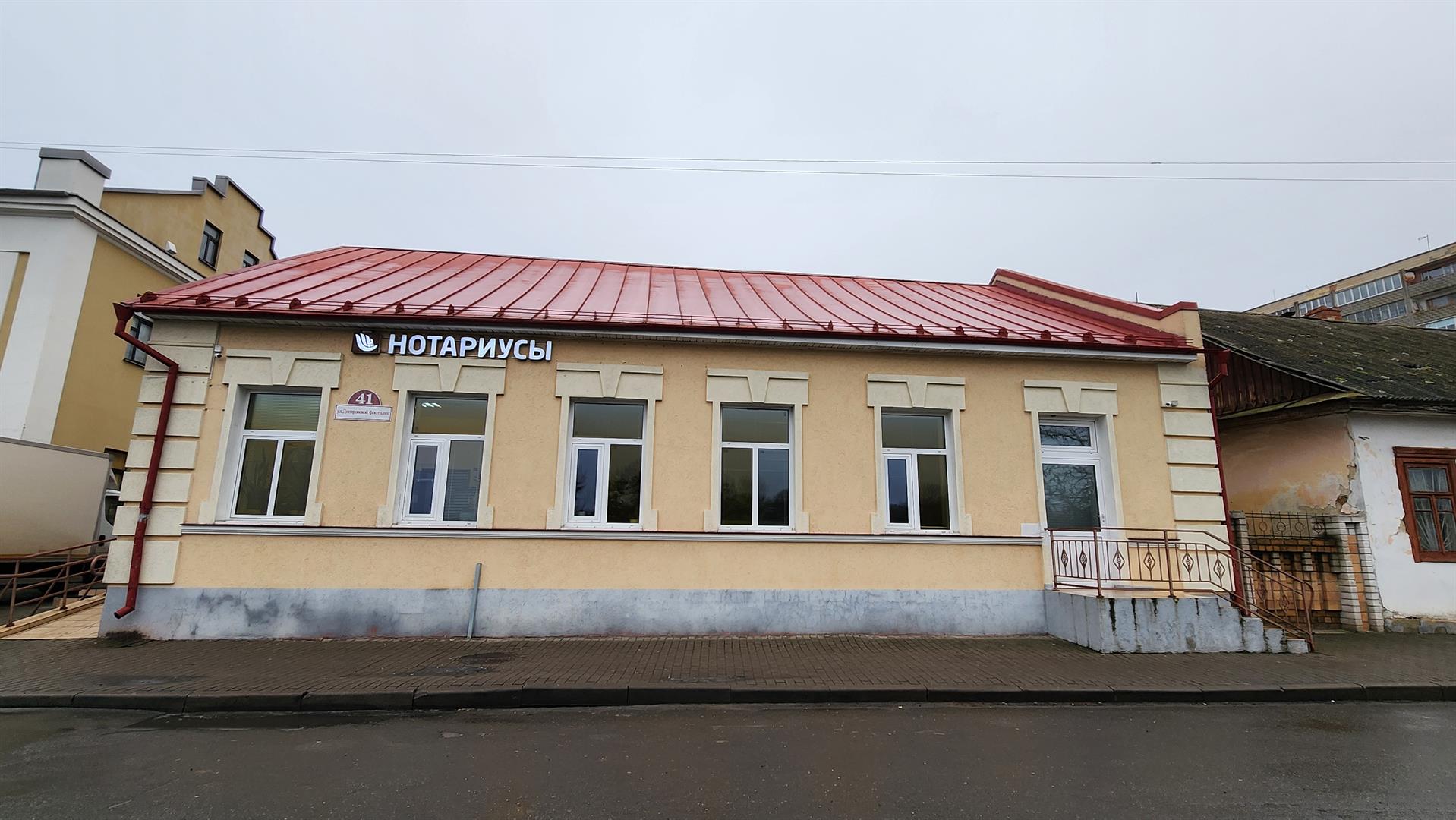 Будынак па вуліцы Дняпроўскай флатыліі, 41 уяўляе сабой аднапавярховае мураванае амаль прамавугольнае збудаванне, размешчанае галоўным фасадам па фронце вуліцы. Будынак складаецца з асноўнага першапачатковага аб'ёму і прыбудовы, дабудаванай у выніку рэканструкцыі 2012 г.