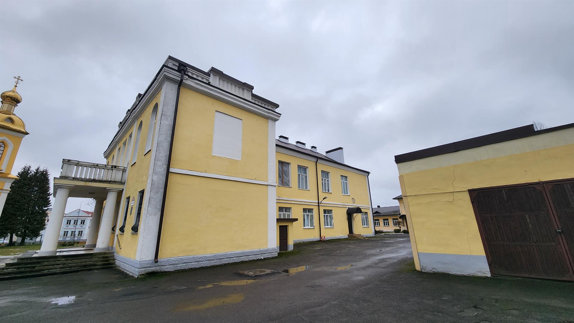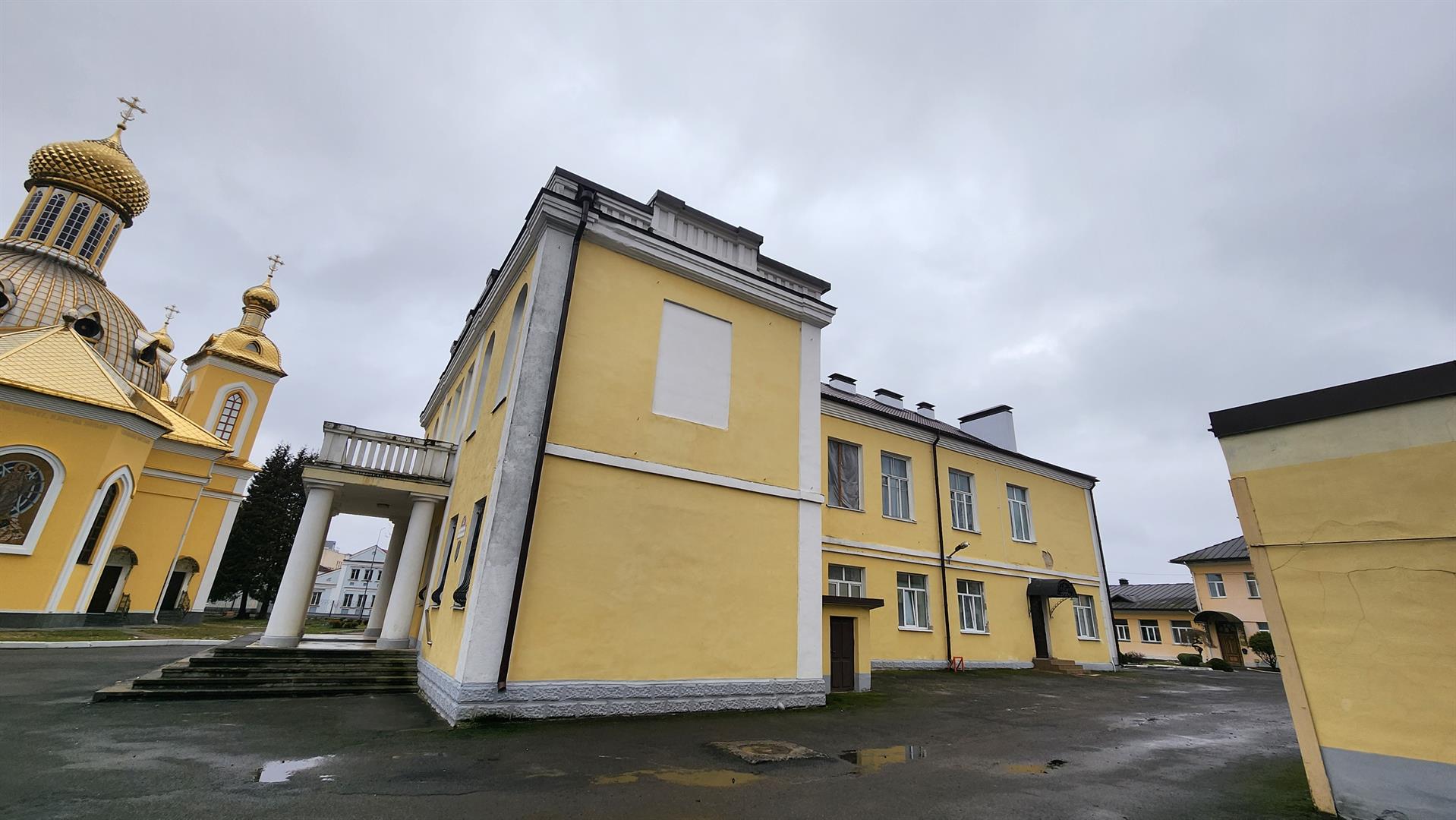 Двухпавярховы мураваны будынак быў пабудаваны Пінскай епархіяй на пачатку ХХ ст., пасля стварэння Палескай епархіі рускай аўтакефальнай праваслаўнай царквы ў Польшчы ў жніўні 1922 года Саборам праваслаўных епіскапаў на частцы тэрыторыі былой Пінска-Навагрудскай епархіі. Першапачаткова ў 1927 годзе на руінах былога кляштара дамініканцаў з выкарыстаннем яго сутарэнняў па праекту інжынера-архітэктара Пакалюка быў пабудаваны двухпавярховы прамавугольны ў плане будынак у польскім “закапанскім” стылі. У 1935 годзе быў распрацаваны новы праект, архітэктура якога адпавядала Св. Фёдараўскаму сабору, выкананаму ў класічным стылі. У 1938 годзе рэканструкцыя была завершана. З прыходам савецкай улады ў Заходнюю Беларусь у 1939 годзе, згодна пастановы Савета Народных Камісараў у 1940 годзе будынак быў муніцыпалізаваны. У 1942 годзе нямецкія акупацыйныя ўлады вярнулі будынак праваслаўнай царкве. У ім размясцілася канцылярыя Пінскай i Палескай мітраполіі пад кіраўніцтвам мітрапаліта ўладыкі Аляксандра, а таксама царква Св. Мікалая. У апошнія дні перад адступленнем нямецкіх войскаў з горада будынак быў разрабаваны. Усяго, па ацэнцы спецыяльнай камісіі, страты склалі 1 545 000 рублёў.
