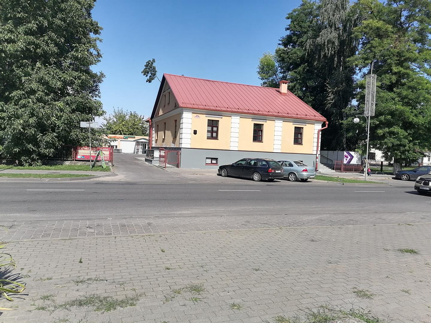 Аднапавярховы з цокольным паверхам прамавугольны ў плане (блізкі да квадрата) будынак. Накрыты двухсхільным дахам. Да дваровага фасада з паўночна-заходняга боку прыбудаваны ніжэйшы тамбур пад двухсхільным дахам. Да ўвахода вядзе высокі ганак. Фасады будынка былі патынкаваныя і пафорбаваныя. Галоўны фасад быў раскрапаваны плоскімі лапаткамі, члянёны трыма прамавугольнымі аконнымі праёмамі без ліштваў, вылучонымі прамымі сандрыкамі. Па перыметры будынка праходзіў прафіляваны карніз. Пад час рэканструкцыі фасады і фронтоны на боковых фасадах будынка абшылі сайдзінгам, цокаль абліцавалі бетоннымі дэкаратыўнымі пліткамі, што ў значнай ступені сказіла гістарычны выгляд дома. Заменена аконная сталярка. Дах перакрылі металапрофілем.