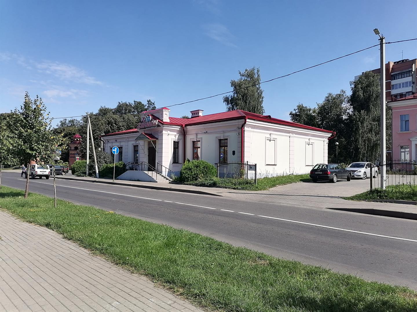 Будынак знаходзіцца на рагу двух вуліц З. Касмадзем'янскай і Завальнай. Быў пабудаваны каля 1905 г. і выкарыстоўваўся пад казначэйства. У польскі час будынак належыў Міністрэству фінансаў, і ў будынку размяшчалася ашчадная касса. У час вайны будынак належыў бальніцы, і ў ім размяшчаліся жылыя кватэры для персаналу шпіталя. Пасля вайны некаторы час дом працягваў выкарыстоўвацца як жылы. Потым у ім размясціліся медычныя кабінеты. З 2011 г. у будынку знаходзіцца гандлёвы цэнтр.