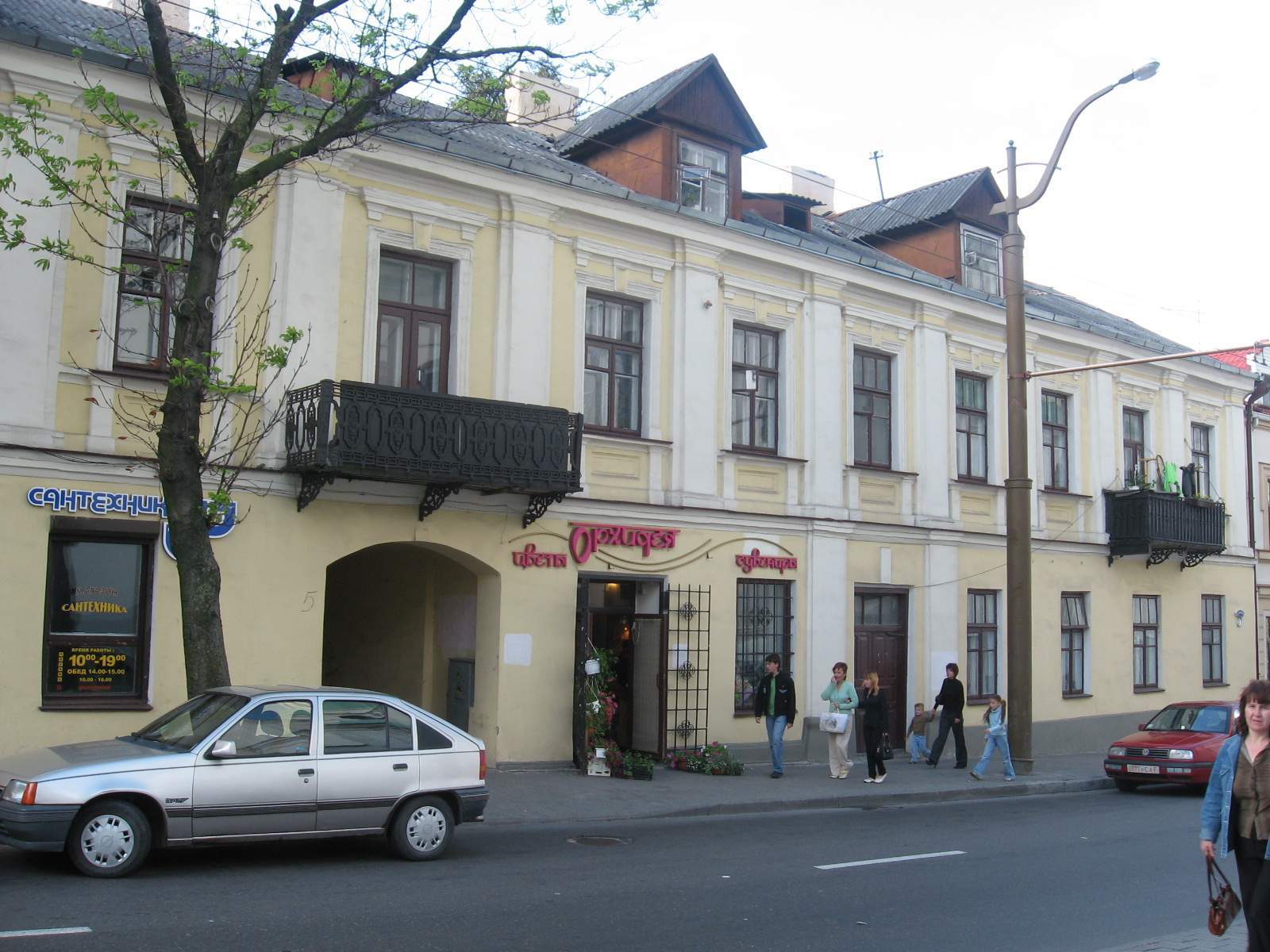 Паводле архіўных дакументаў, у другой палове ХІХ ст. участак, на якім пабудаваны дом, належаў шляхціцу Фількевічу. У 1886 г. на пляцы ўжо згадваецца аднапавярховы мураваны дом, флігель і гаспадарчы будынак. Па звестках на 1924 г. уладальнікамі ўчастка з забудовай былі Канстанцін і Хелена Савінскія. На той час забудову пляца складалі 2 мураваныя жылыя дамы і гаспадарчы будынак. Адзін з дамоў быў аднапавярховы, крыты дахоўкай, другі -- двухпавярховы, крыты жалезам. Стан будынкаў характарызаваўся як сярэдні. Дамы выкарыстоўваліся як жылыя. У будынку, які фасадам арыентаваўся на вуіцу, былі харчовая і абутковая крамы.