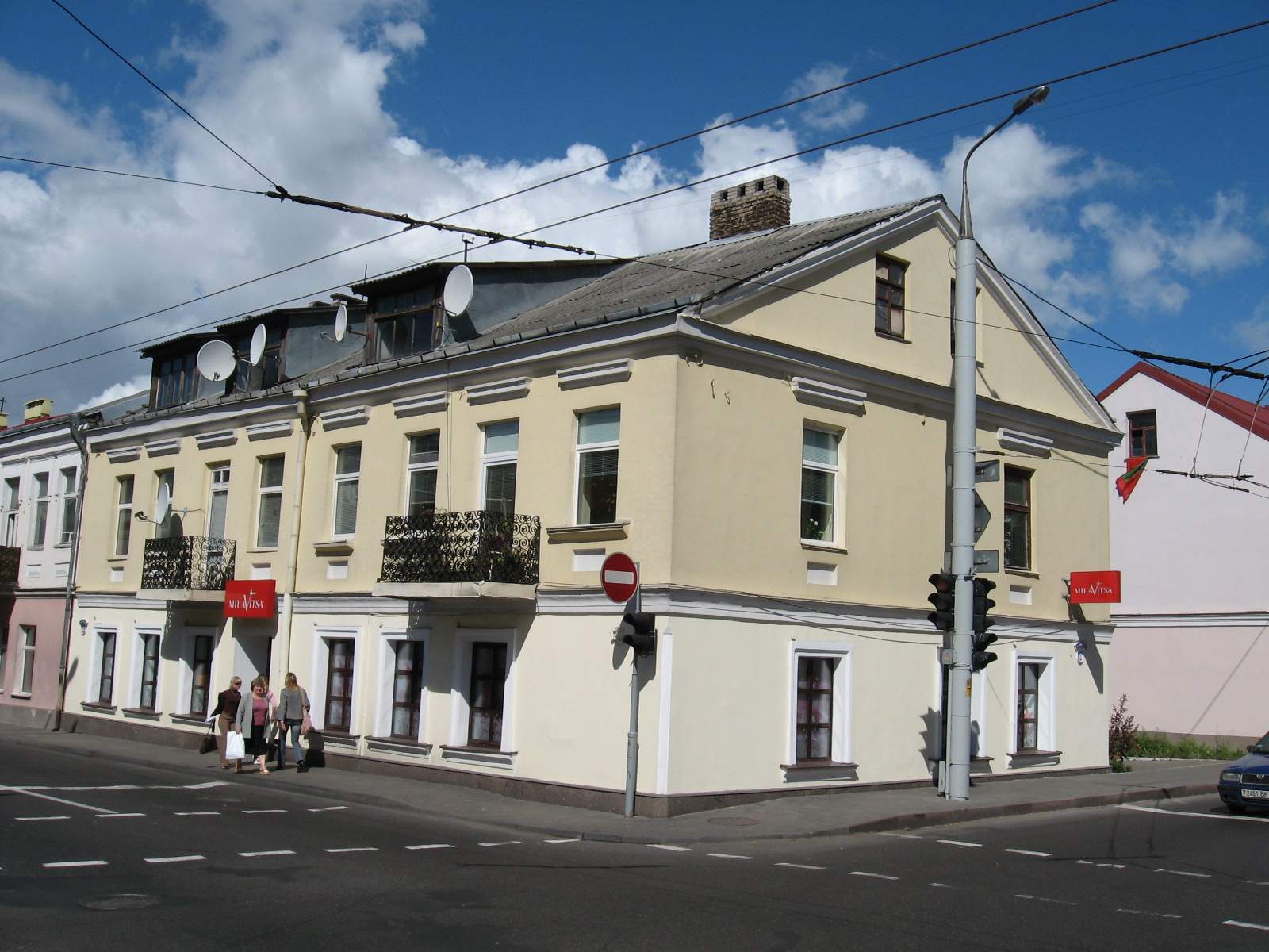 Будынак па вул. К. Маркса № 12 — дом Канстанціна Тарасевіча, памешчыка, якому належала сядзіба Гнезна (Ваўкавыскі павет). Пабудаваны ў 1890, 1900 гг. у стылі эклектыка. Згодна з інвентарным вопісам нерухомай маёмасці за 1910-1912 гг. новы дом быў каменны, двухпавярховы, з мезанінам і флігелем, дах быў накрыты жалезам. На 1924 год стан будынка зафіксаваны як сярэдні, дах накрыты жалезам, будынак агароджаны. На 1-м паверсе будынка і ў флігелі размешчаны цырульня, аптэчная крама Отавіча, магазіны музычных інструментаў, каўбасных вырабаў, магазін агародніны, майстэрні.