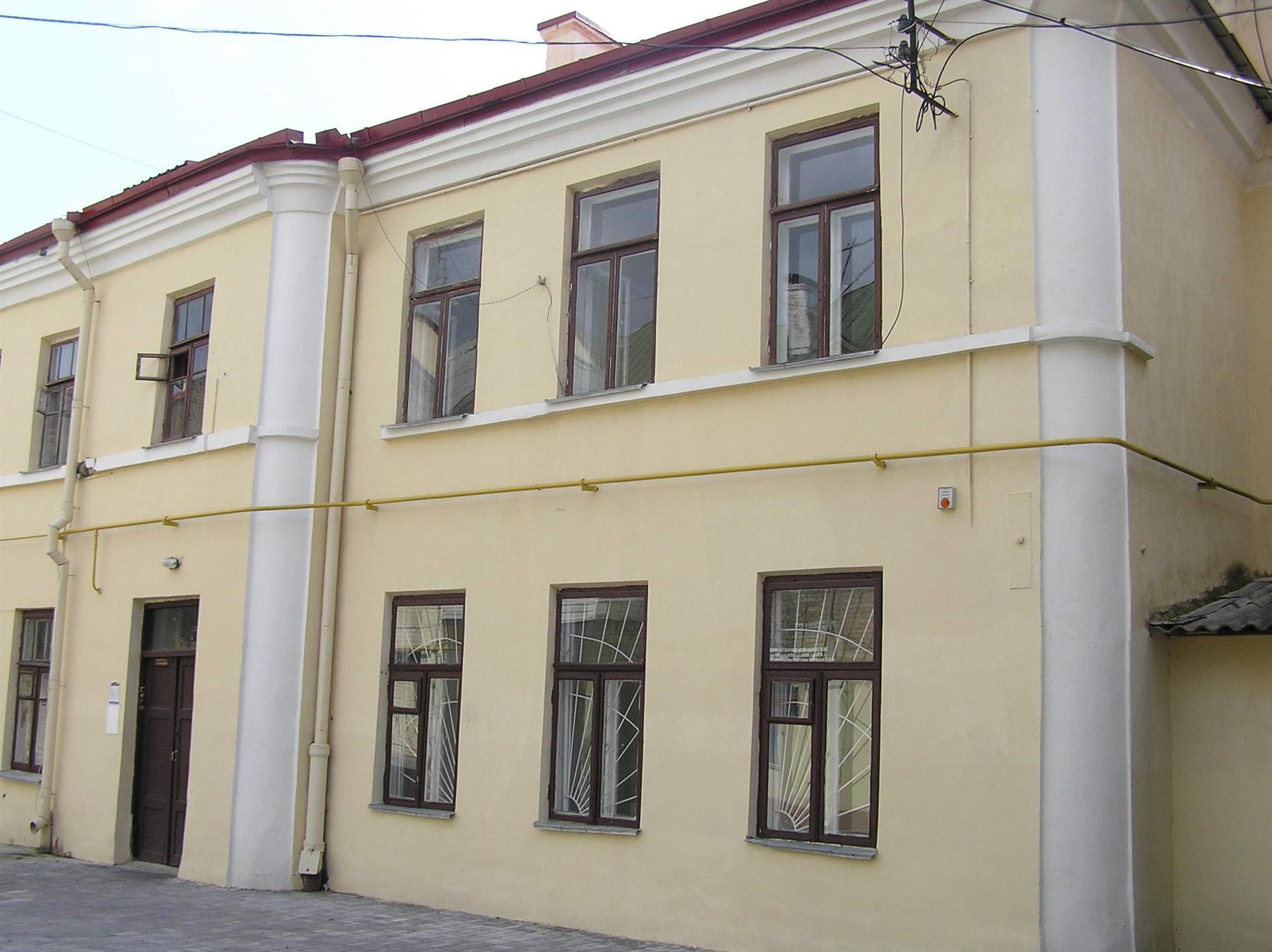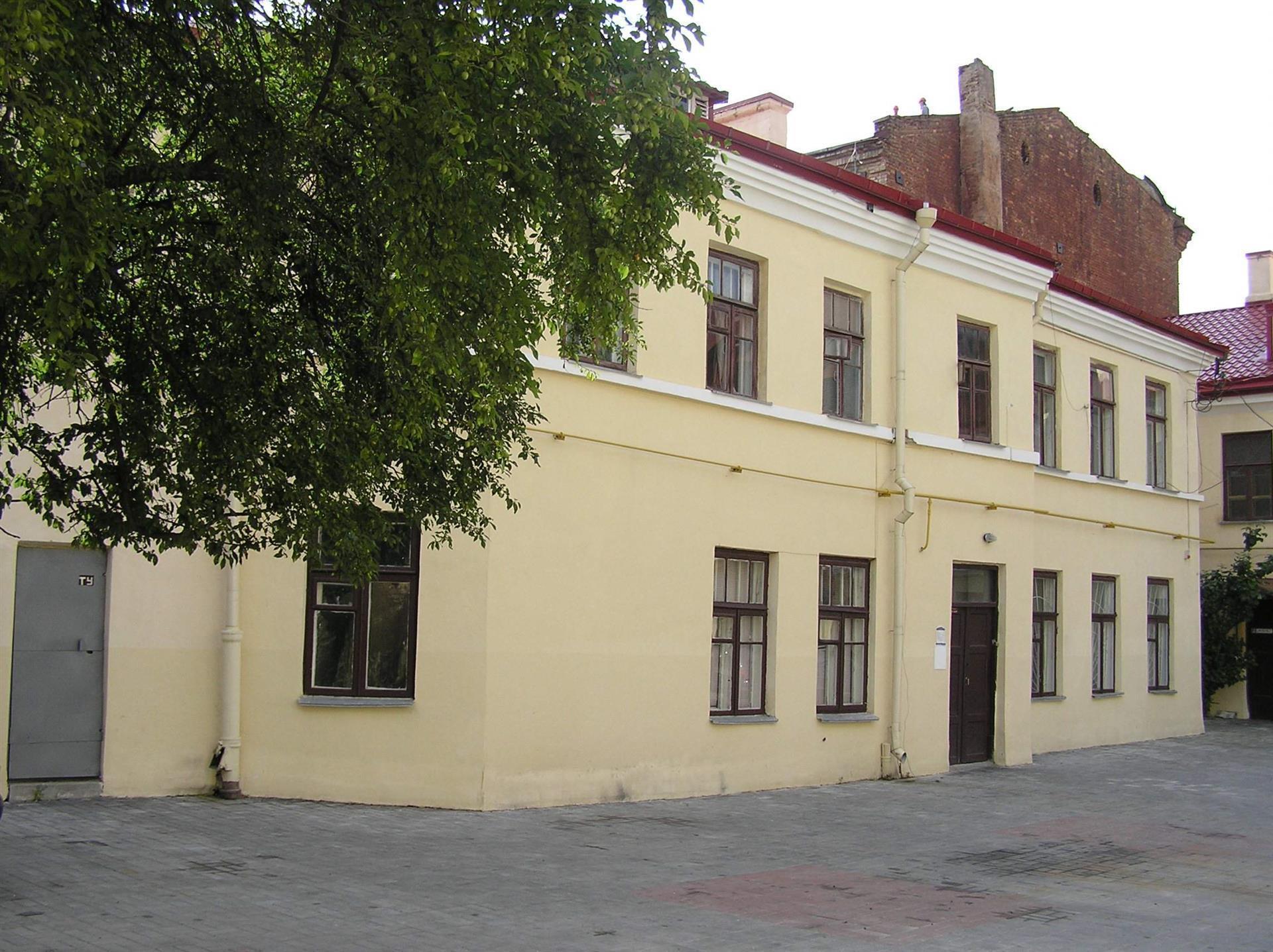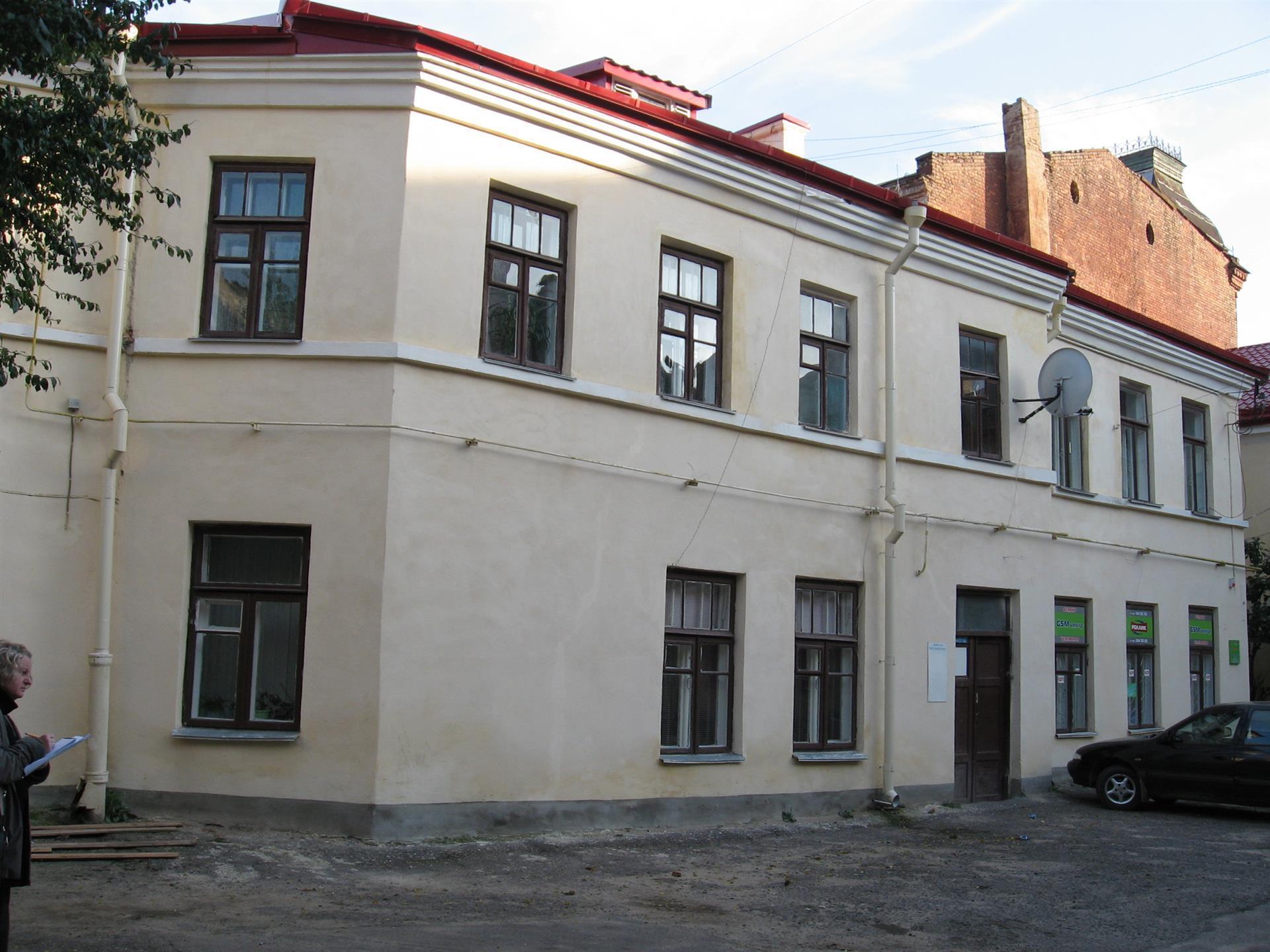 Будынак па вул. Савецкай № 1 паводле архіўных дадзеных пабудаваны ў 1851 г. на месцы ранейшых пабудоў (карчмы і камяніцы). Да дома прымыкаў аднапавярховы флігель. У 1885 г. у цэнтры г. Гродна адбыўся спусташальны пажар. Пасля пажару ў 1890 г. будынкі на пляцы былі адноўлены, пры гэтым раней аднапавярховы флігель па фронту вул. Савецкай перабудаваны ў двухпавярховы. Затым у 1895 г. да яго ўздоўж вуліцы быў прыбудаваны новы двухпавярховы аб'ём, злучаны праязной аркай. З 1922 г. тут працавала крама канцтавараў Хацкеля Міроўскага.