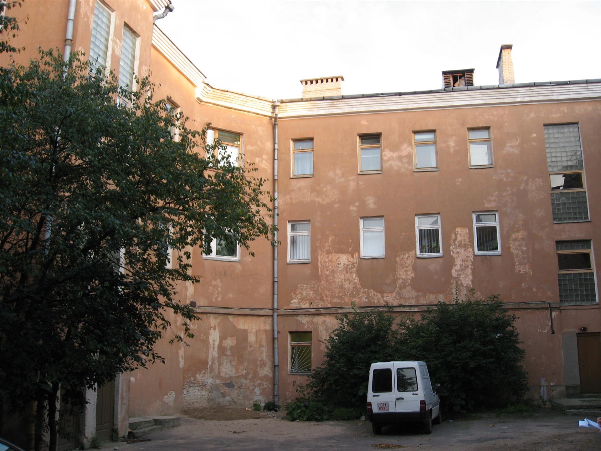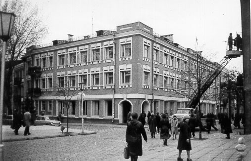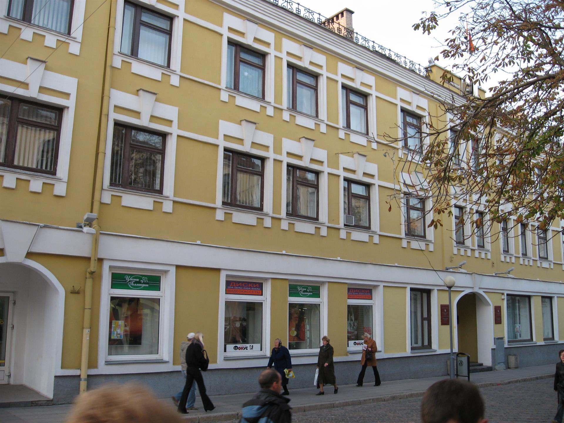 Першапачатковы цагляны П-падобны ў плане 2-павярховы аб’ём быў пабудаваны, як рэзідэнцыя Сапегаў. У сярэдзіне XIX ст. новым уладальнікам з’яўляецца Саламон Лапін. Будынак перабудоўваецца ў жылы дом з крамамі на 1-м паверсе. Адначасова выканана прыбудова ўздоўж вуліцы Дамініканскай (сучасная Савецкая) да мяжы з суседнім будынкам (сучасная вул. Савецкая, 12), у двары з’явіўся флігель. Будынак набыў Г- падобную форму плана, сіметрычную кампазіцыю галоўнага фасада з 2-мя балконамі. Схільны дах да 1915 г. быў накрыты дахоўкай, потым бляхай. У сярэдзіне 70-х гг. XX ст. будынак значна перабудаваны, З’явіўся 3-ці паверх, прамавугольныя аконныя праёмы павялічаны ў памеры.