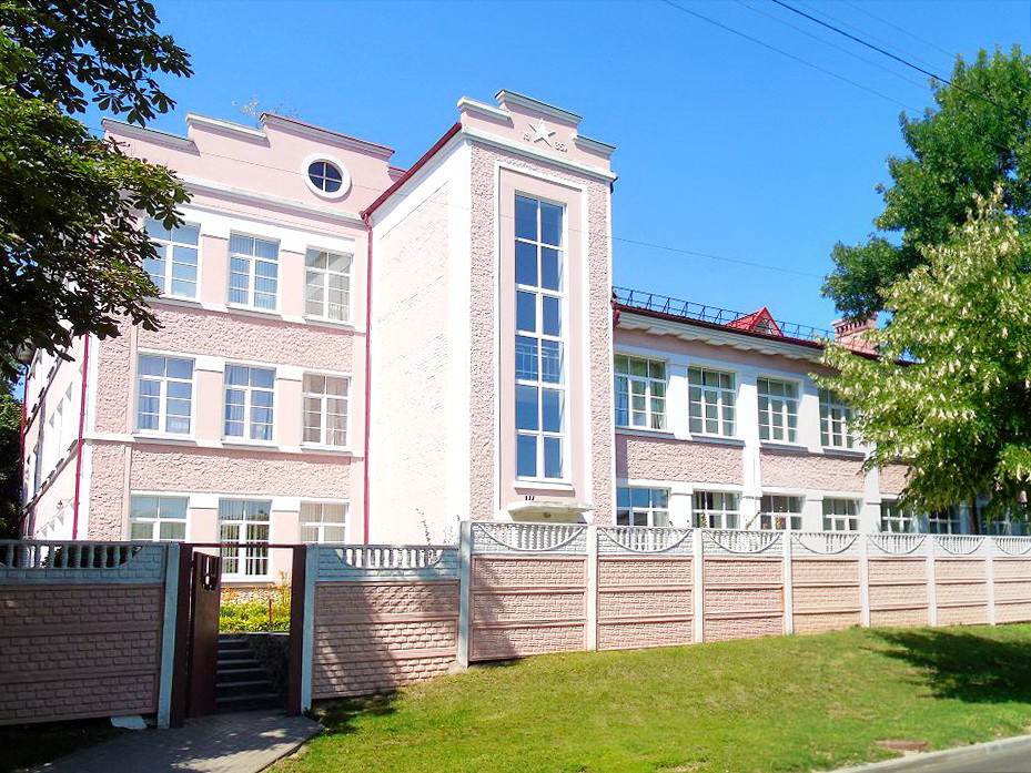 Дом адным з фасадаў звернуты на вуліцу Арцёма. Улічваючы яго месца размяшчэння, можно выказаць меркаванне, што будынак узводзіўся на месцы навучальных устаноў, якія існавалі тут раней.