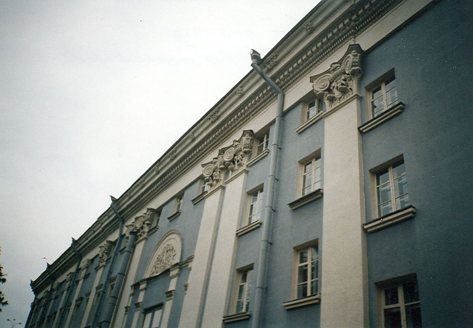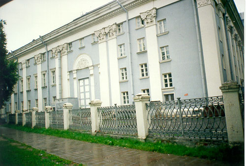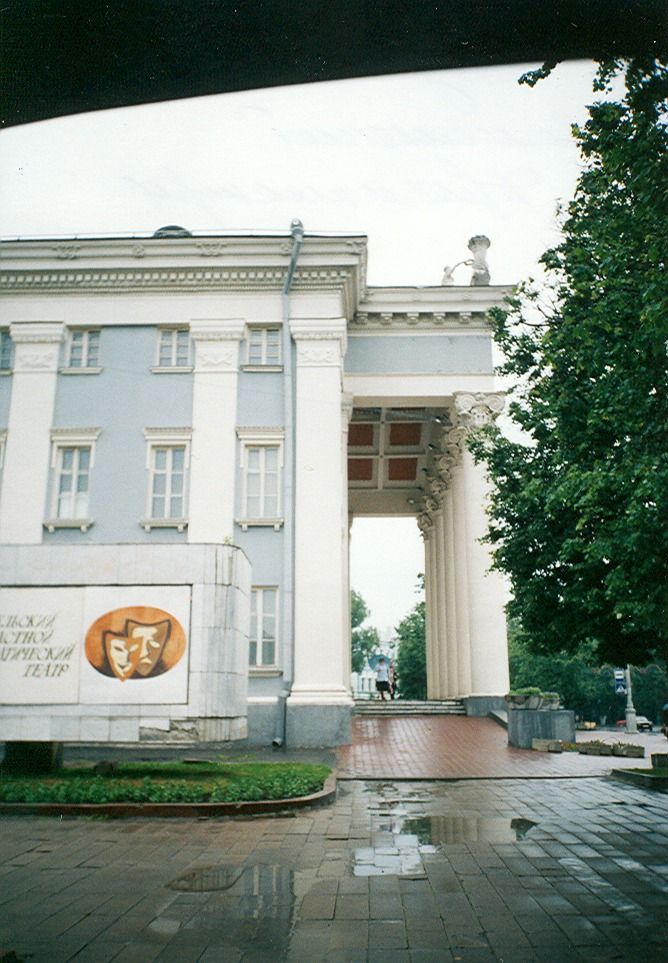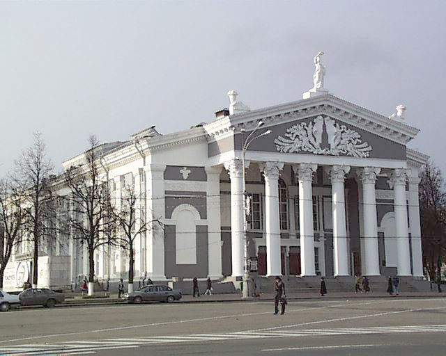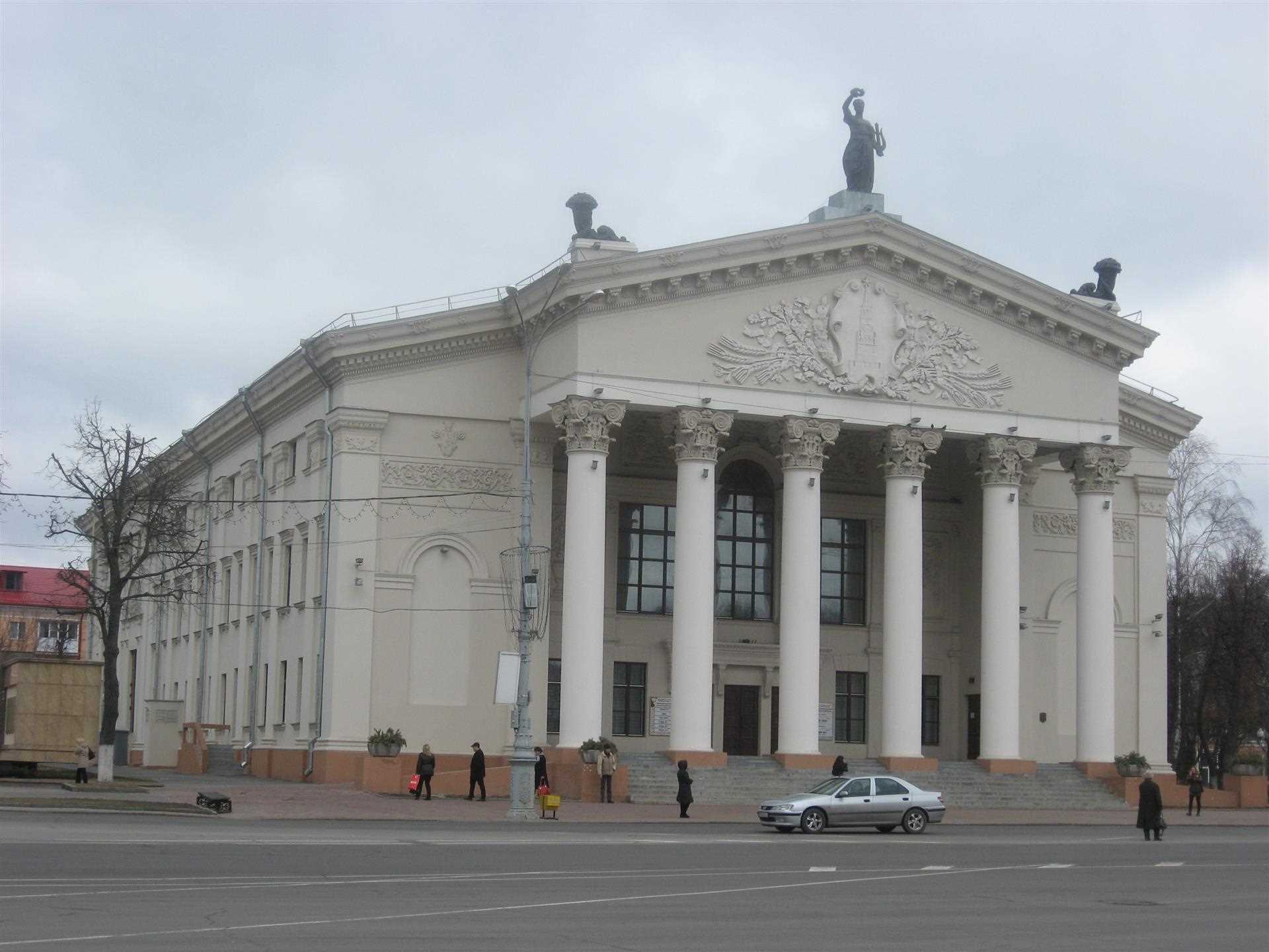 Абласны тэатр з'яўляецца значным новым збудаваннем першага пасляваеннага дзесяцігоддзя. Месца пад будаўніцтва было выбрана яшчэ ў даваенныя гады на прасторнай плошчы Леніна. Праектаваўся тэатр на 800 месцаў архітэктарам А. Тарасенкавым у 1948-1954 гг. пад кіраўніцтвам вядомага майстра савецкай архітэктуры І. Жалтоўскага.