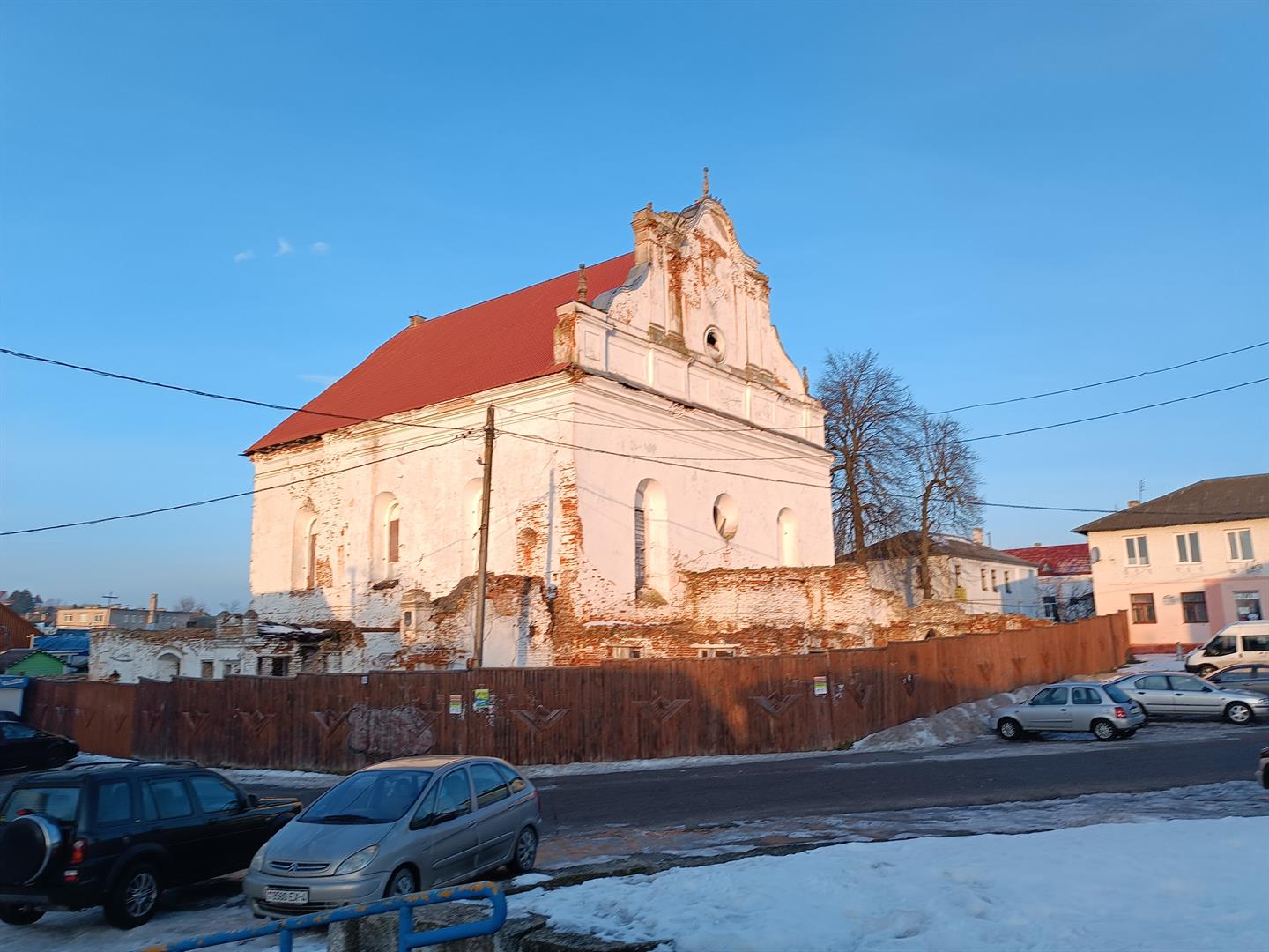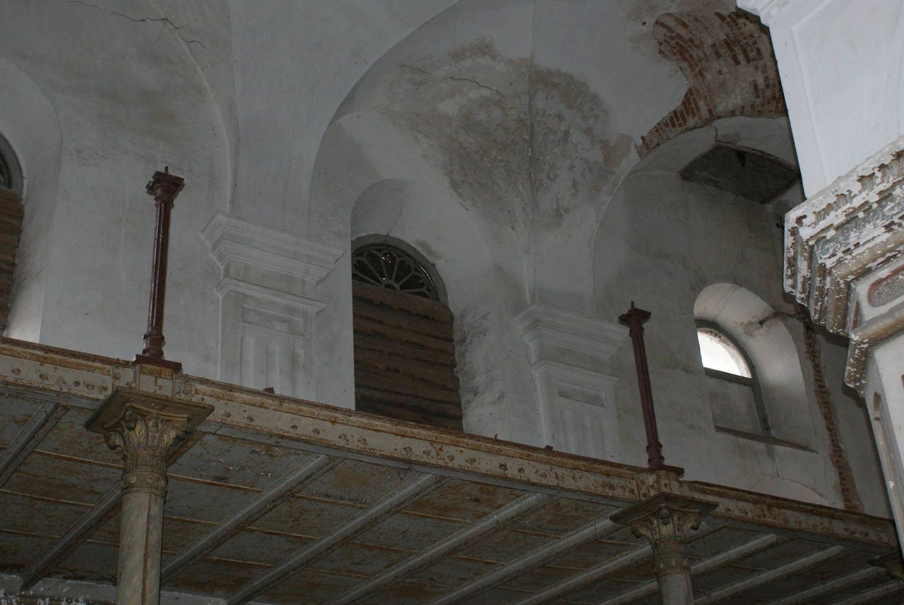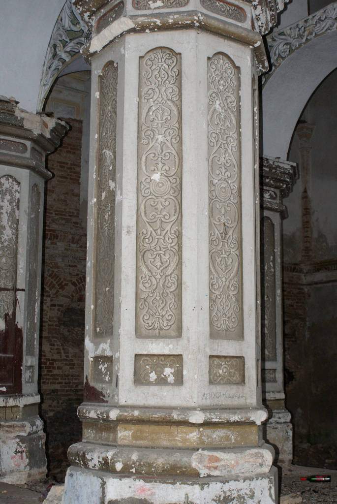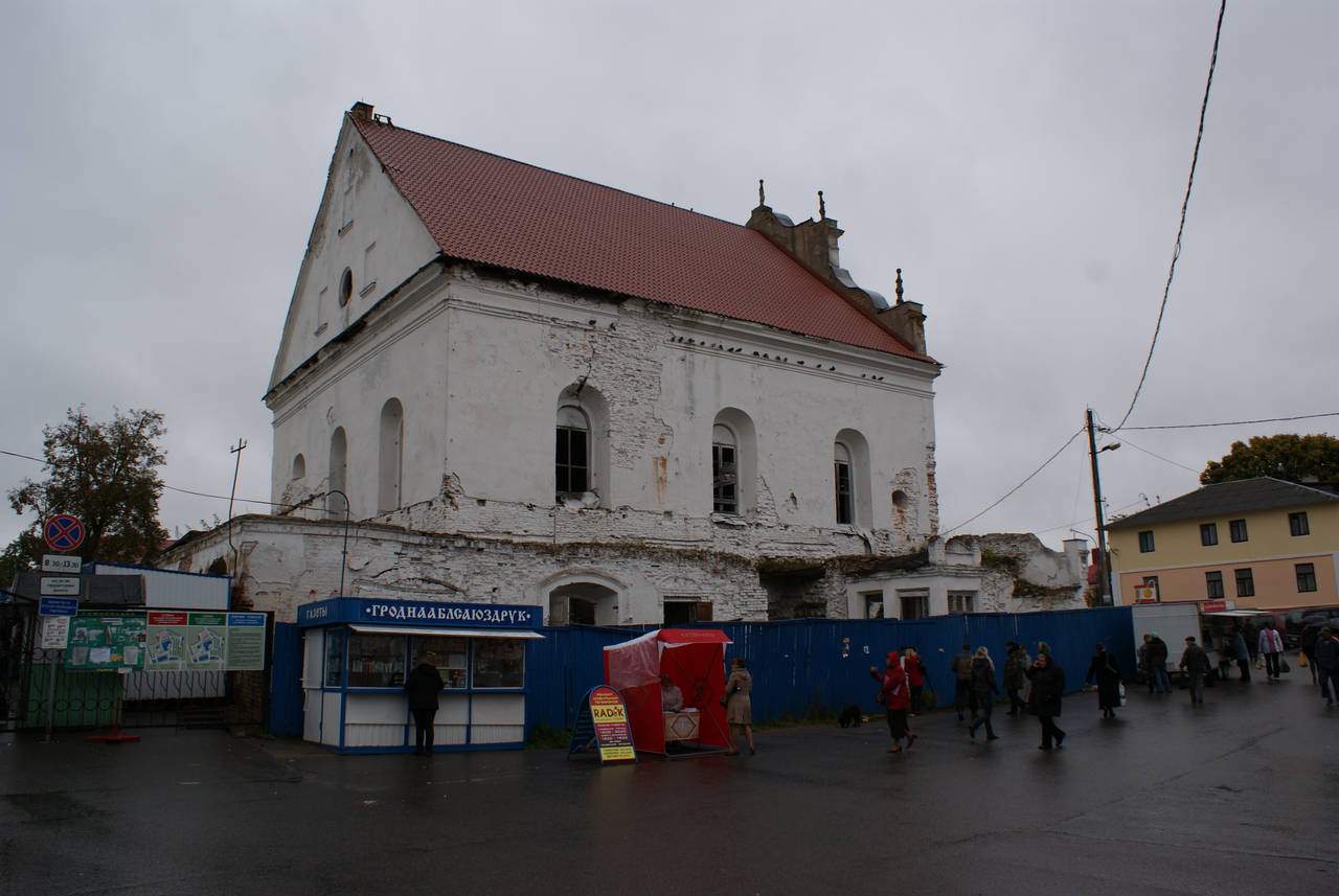 Сінагога - квадратны ў плане цагляны будынак пад высокім двухсхільным дахам, узведзены па ўстаноўленай у XVII - XVIII стст. для гэтага тыпу культавых збудаванняў цэнтрычнай дзевяціпольнай планіровачнай схеме: канструкцыя перакрыцця вырашана дзевяццю скляпеністымі пралётамі. Асноўны аб'ём па перыметры абнесены радам нізкіх пазнейшых пабудоў (цяпер напалову разбураныя). Цэнтрычнасць збудавання падкрэслена і двух'яруснымі фасадамі, якія маюць трохвосевую сіметрычную кампазіцыю.