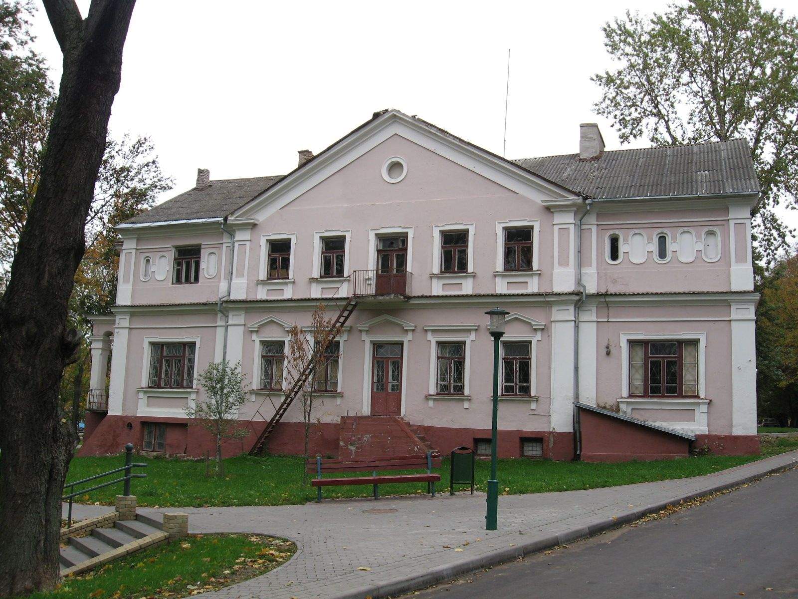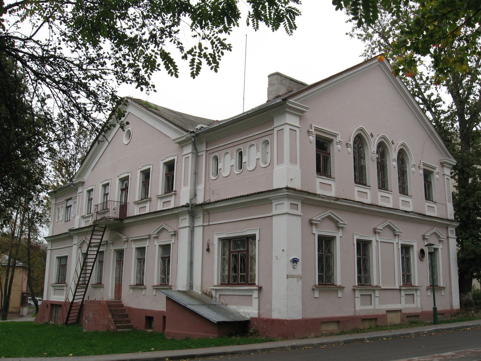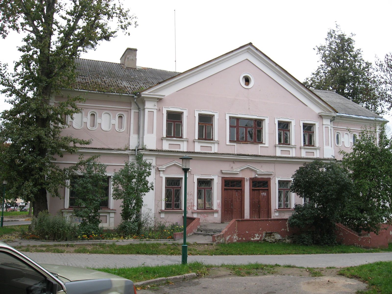 Двухпавярховы з цокальным паверхам прамавугольны ў плане будынак з высокім двухсхільным дахам. Фасады патынкаваныя. Галоўны фасад вылучаны ў цэнтры шырокім рызалітам з высокім двухсхільным шчытом. У тымпане шчыта круглая люкарна ў абрамленні. Схілы шчыта аформлены карнізным поясам.