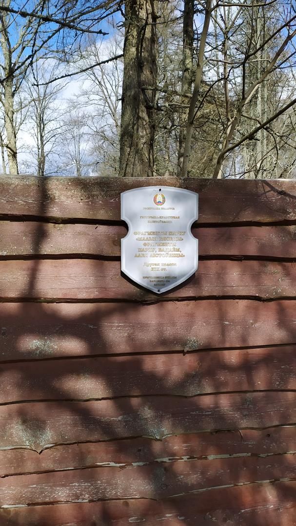 У найбольш высокай частцы сядзібы стаяў на высокім падмурку дом з тэрасамі і балконамі. Першы паверх дома быў цагляны і ў асноўным выконваў ролю зімовага сада. Над цэнтральнай часткай другога, драўлянага паверха, узвышалася драўляная васьмігранная вежа. Невялікі схіл перад домам займаў газон, а ў нізіне знаходзіўся параўнальна невялікі прамавугольны вадаём. Дом атачалі пасадкі, у складзе якіх да цяперашняга часу захаваліся па тры дрэвы піхты бальзаміннай і сасны вейматавай, дуб чырвоны, лістоўніца еўрапейская. У анове кампазіцыі з сядзібным домам ужыты арыгінальны прыем планіроўкі ў выглядзе шырокай алеі з лістоўніцы (да 11 м), вось якой арыентавана на Радашковічы да ляснога возера. Алея з лістоўніц звязвала сядзібу з полем і лесам. Выяздная алея выгіналася і ішла пад вуглом да восі сядзібы з відамі на вадаёмы ў пойме Удры. Затым алея паварочвала направа і вяла да выязной брамы. Ствалы бяроз у алеі былі сфарміраваны ў выглядзе двайчатак (захавалася 17 дрэваў). Справа ад параднага двара размяшчаўся гаспадарчы.