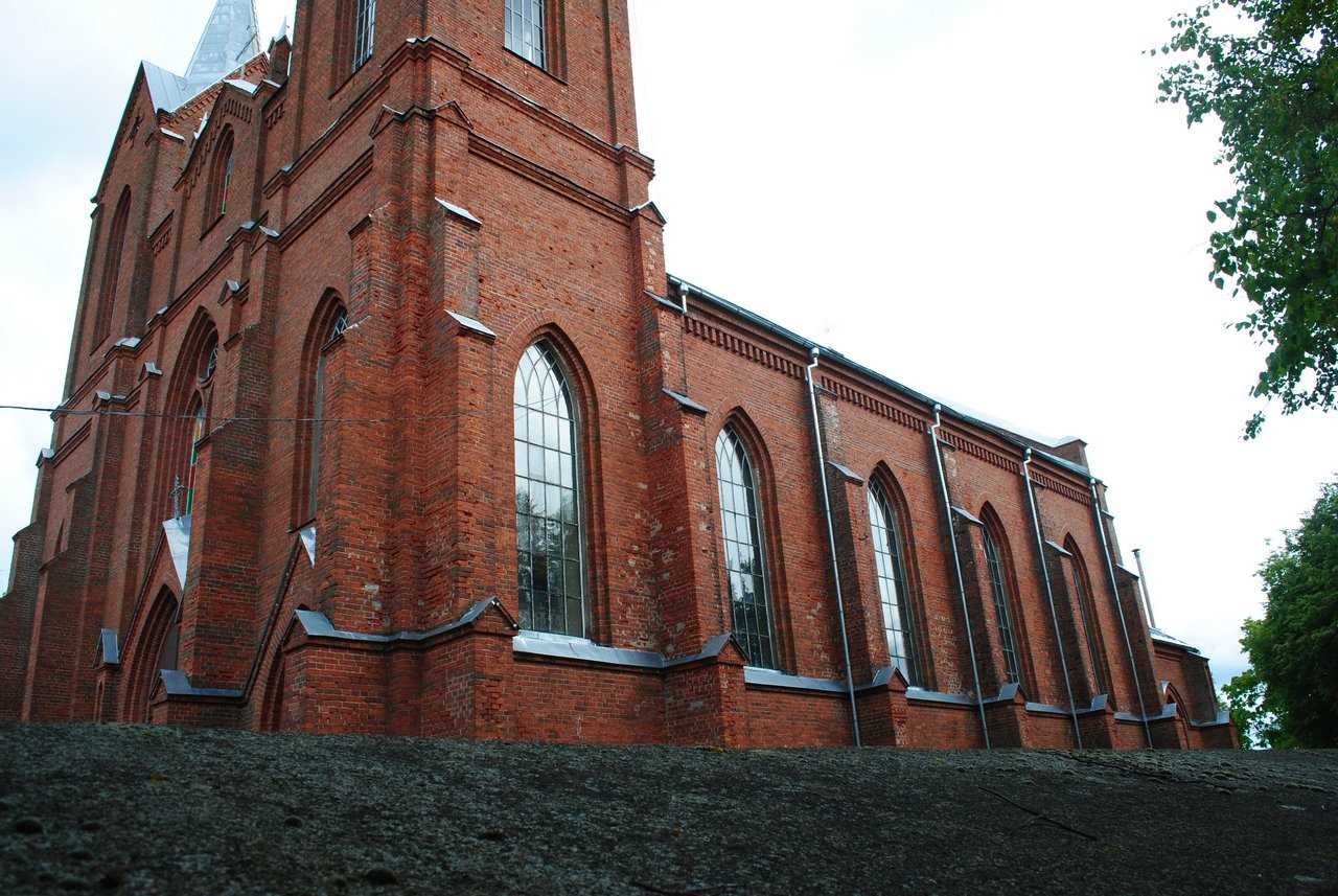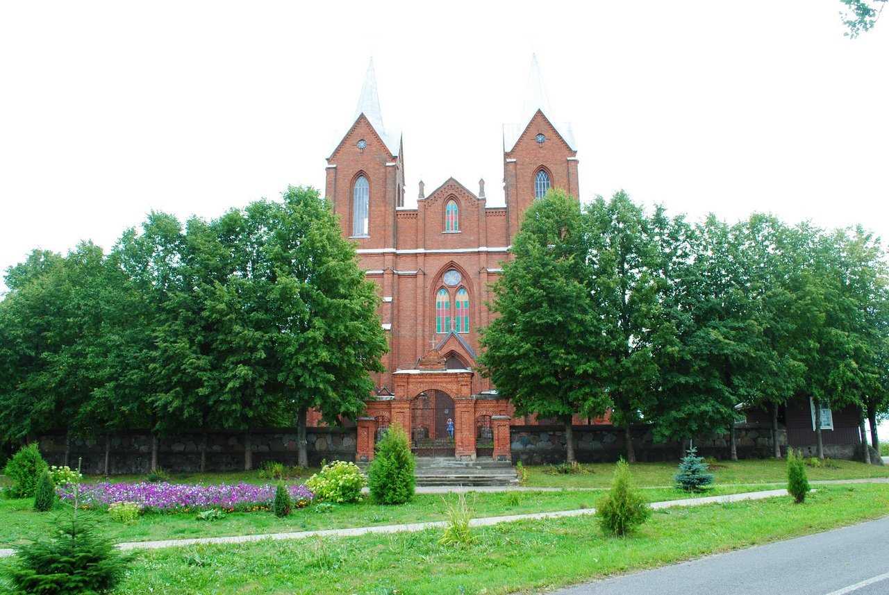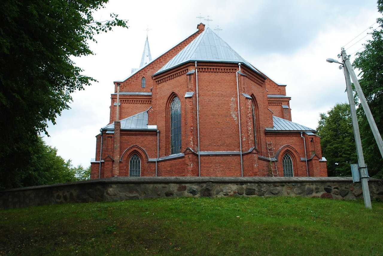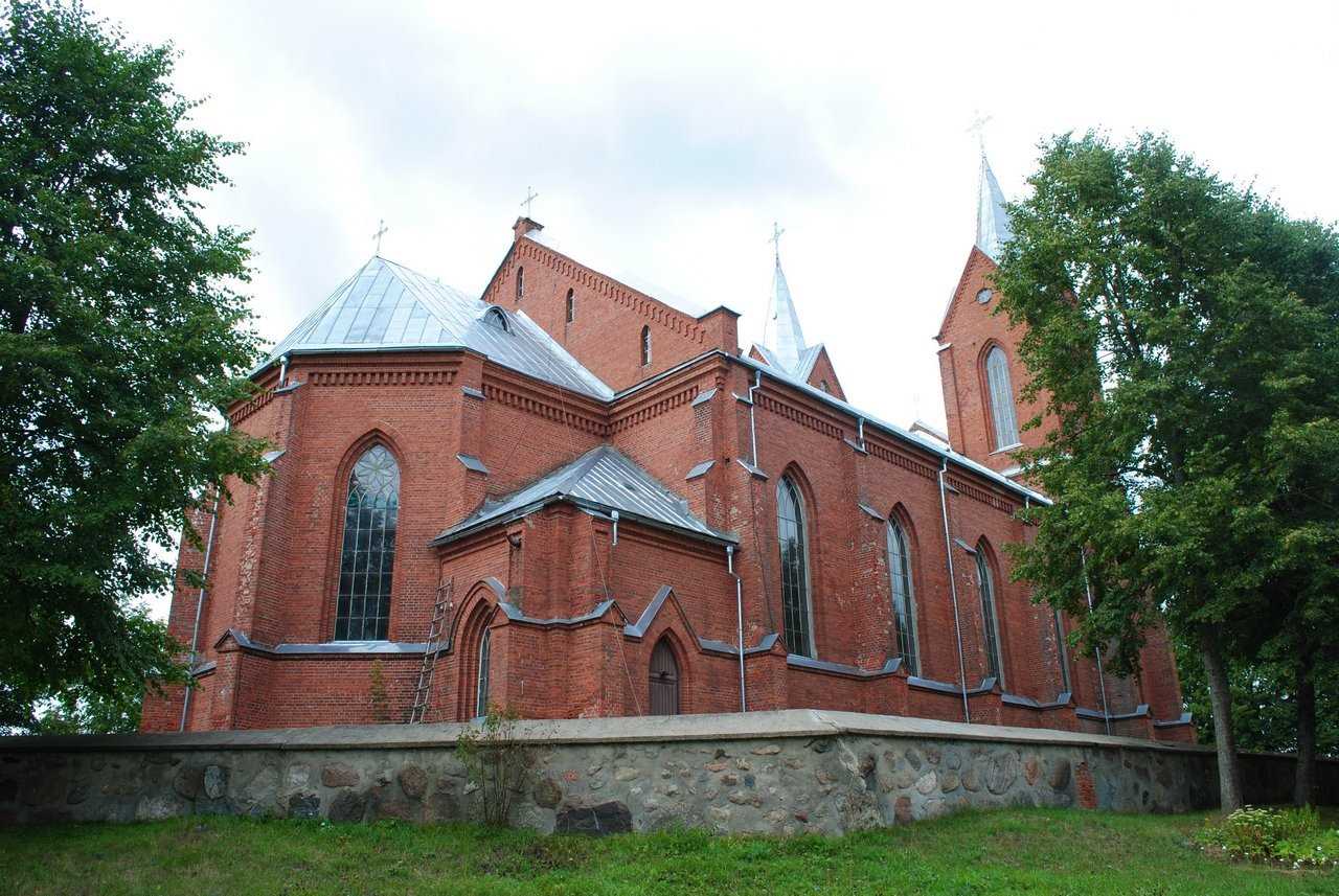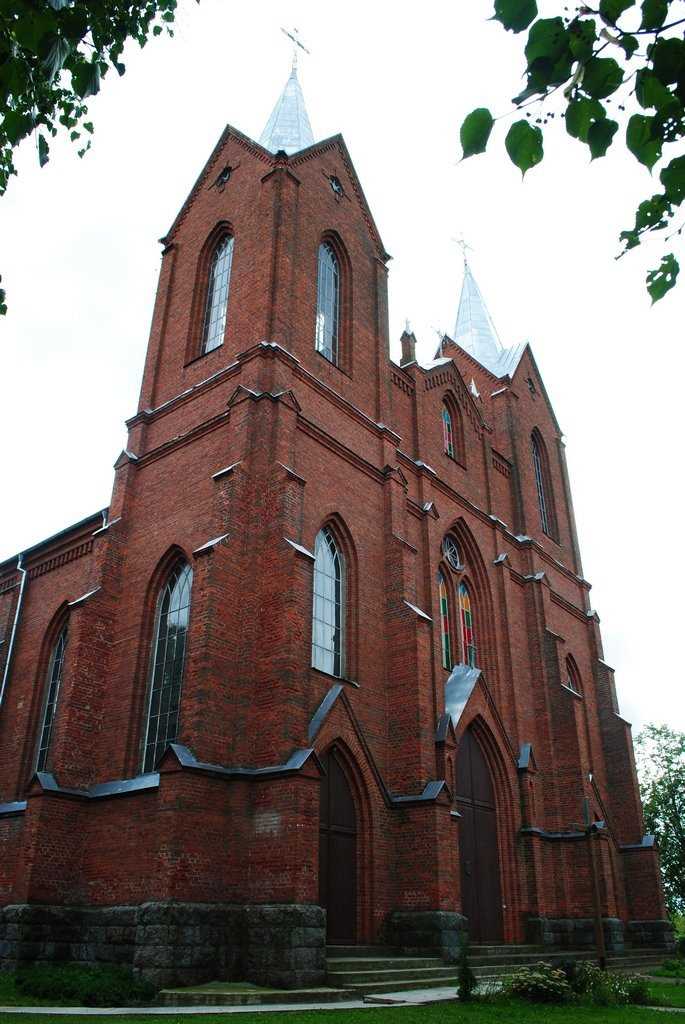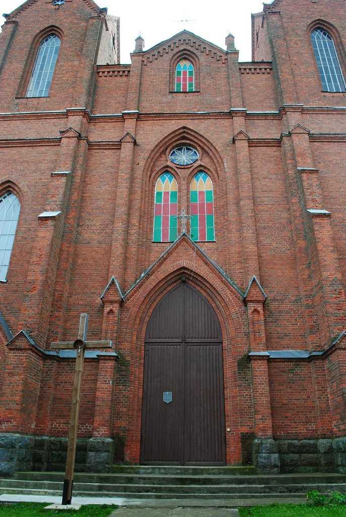 Касцёл быў узведзены з чырвонай цэглы на цокалі з апрацаваных палявых камянёў. Уяўляе сабой двухвежавы трохнефавы храм з пяціграннай апсідай з сакрысціямі. Пластыка фасадаў даволі выразная, архітэктурны дэкор выкананы ў тэхніцы цаглянай муроўкі. Асноўнымі архітэктурнымі элементамі ў фарміраванні знешняга аблічча касцёла з'яўляюцца ступеньчатыя контрфорсы і спічастыя аконныя праёмы.