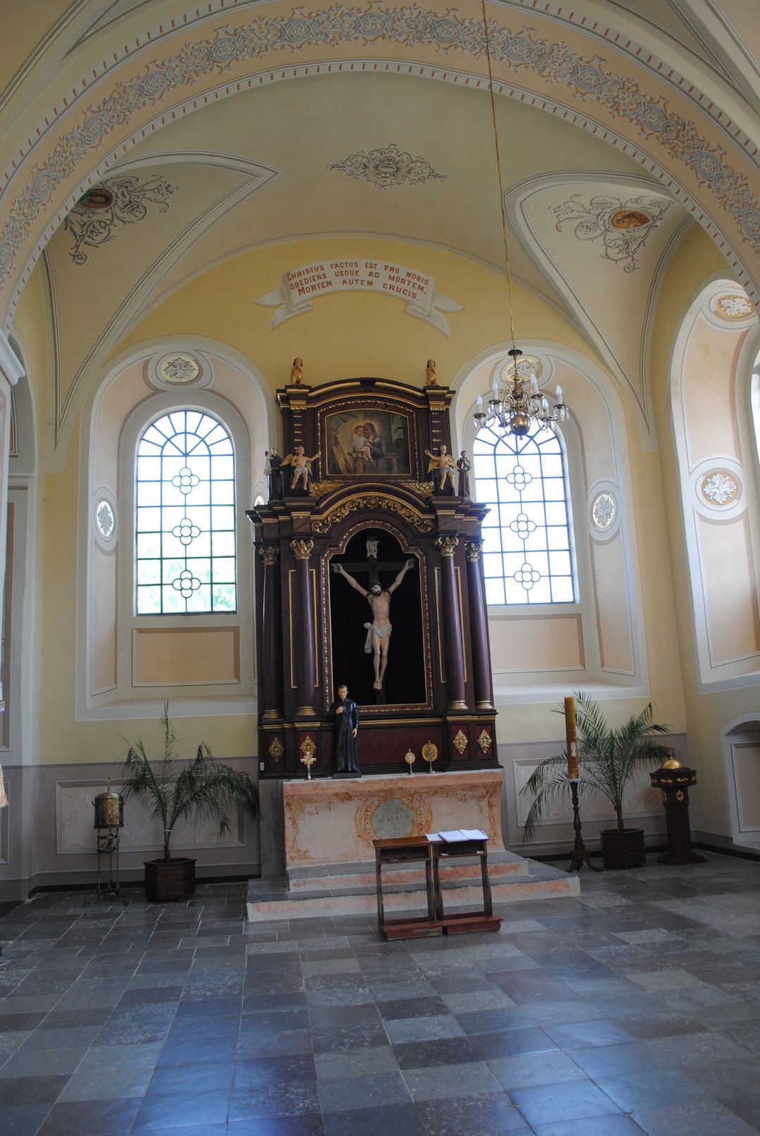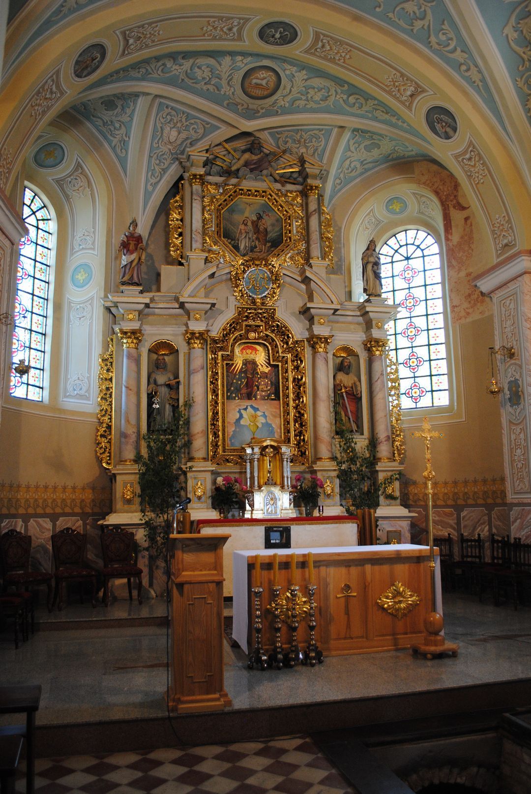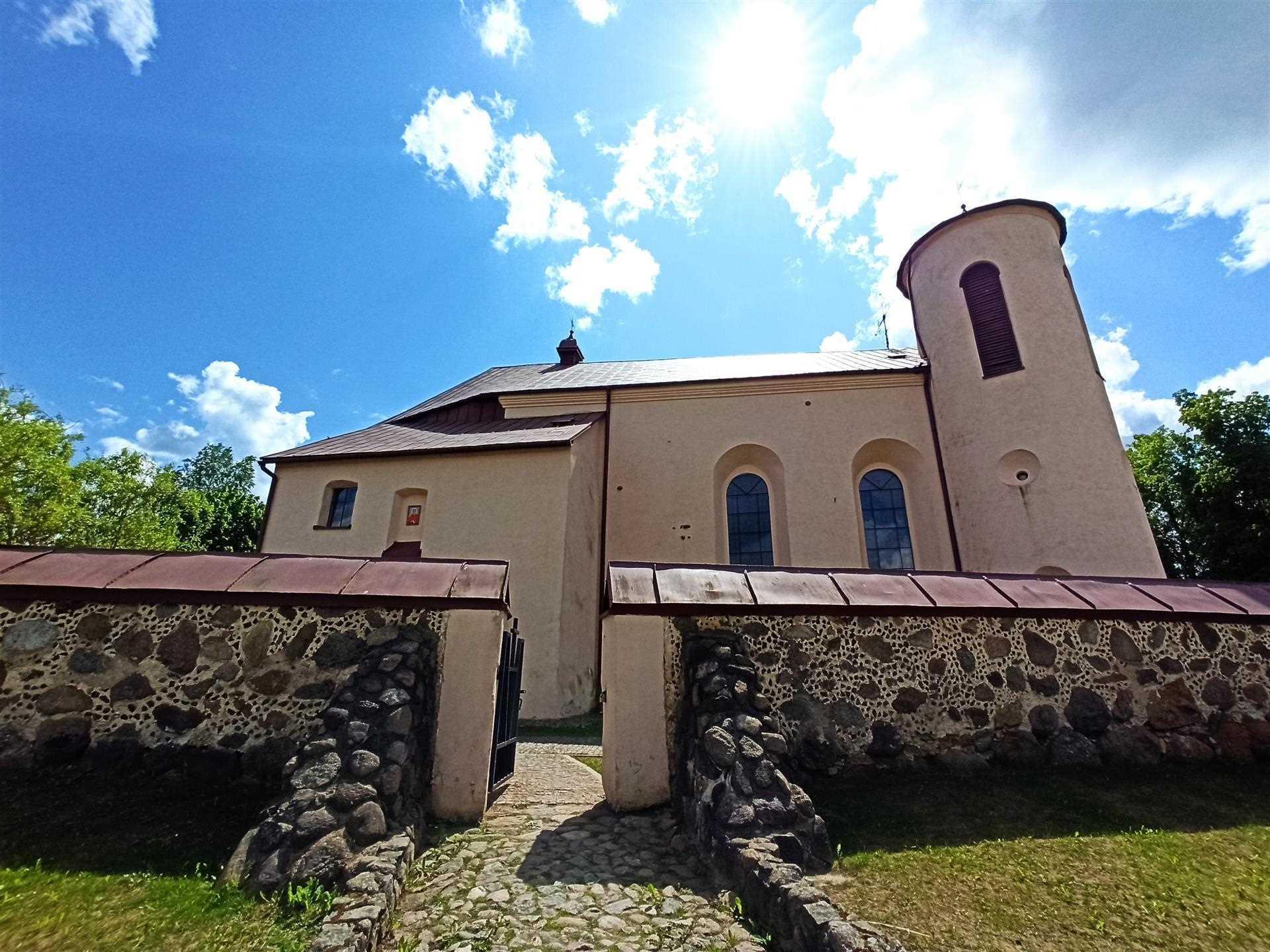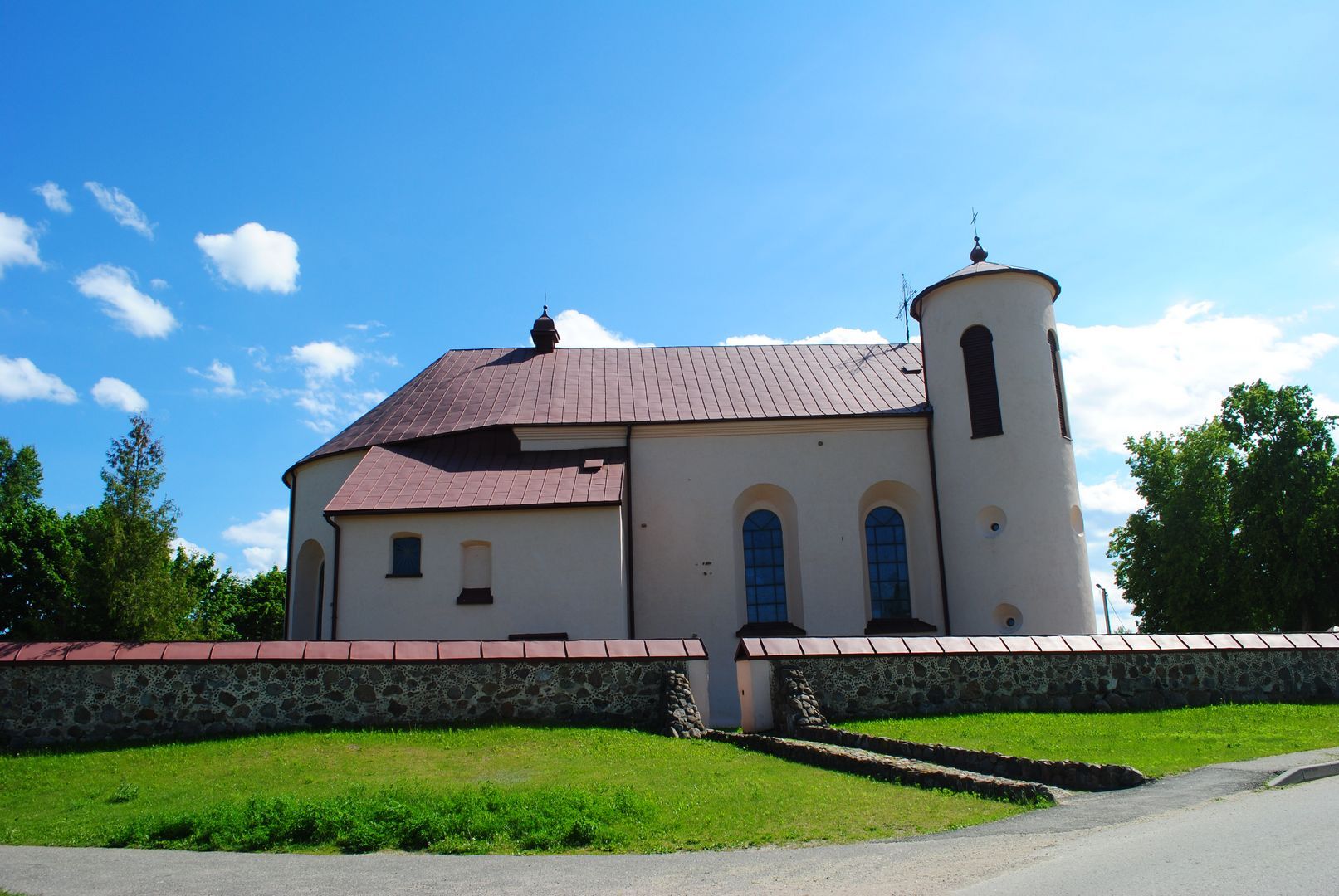 Будынак касцёла двухзальны, з вялікай апсідай і сакрысціяй. Асноўная зала і капліца, якая прымыкае з паўднёвага боку, прамавугольныя ў плане, апсіда - паўцыркульная. Дахі асноўнага аб'ёму і капліцы двухсхільныя, над апсідай скруглены. Фасады касцёла вырашаны лаканічна. Галоўны фасад асноўнага аб'ёму завершаны двухсхільным шчытом, раскрапаваным плоскімі нішамі з арачнымі завяршэннямі. У дзвюх сярэдніх нішах прарэзаны паўцыркульныя люкарны. У цэнтры галоўнага фасада ў глыбокай арачнай нішы размешчаны дзвярны праём спічастага абрысу.
