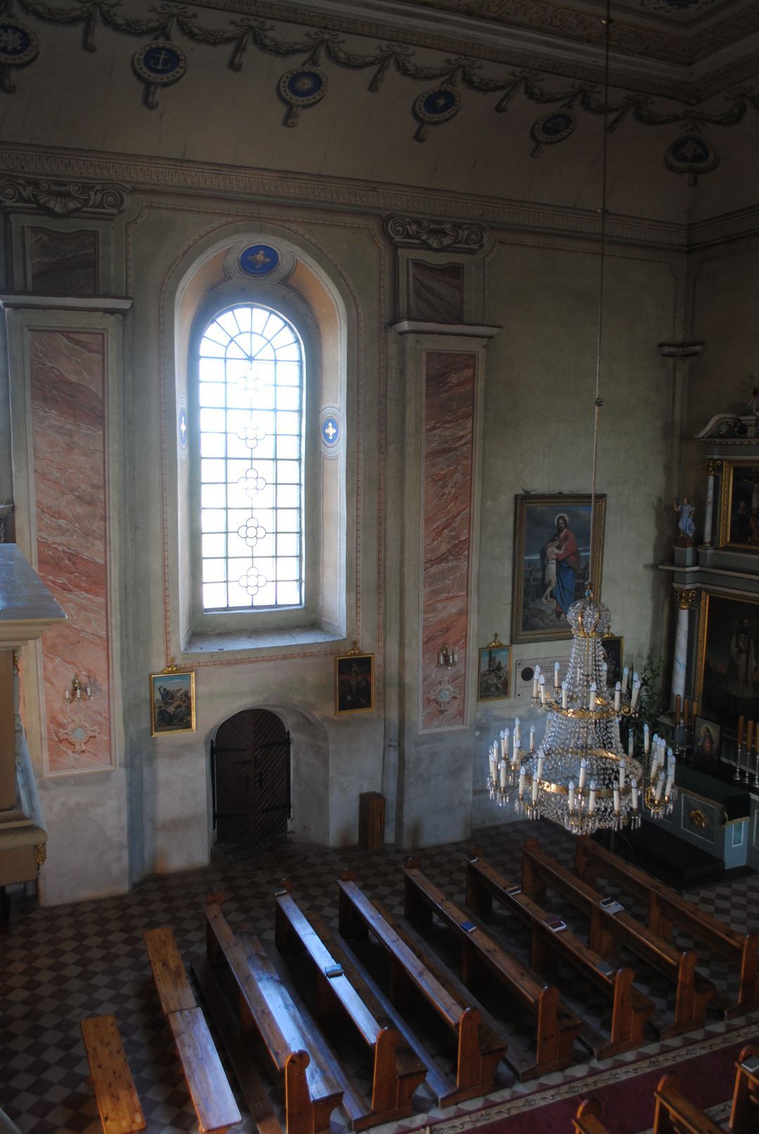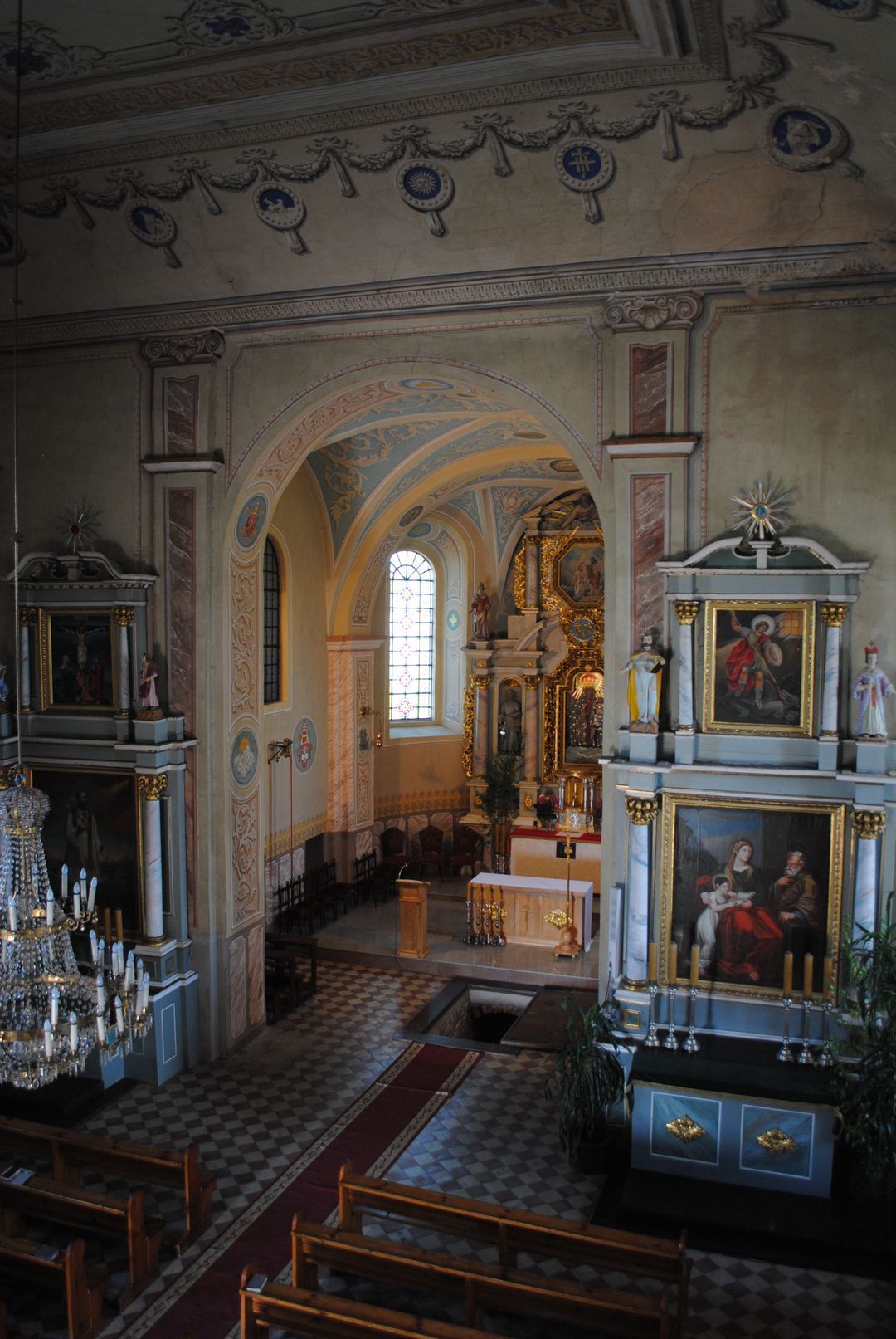 За гісторыю існавання касцёл неаднаразова рамантаваўся і перабудоўваўся. Буйныя рамонтныя работы праводзіліся ў 1726-1736 гг. Даследчыкі мяркуюць, што ў гэты час скляпенні ў алтарнай частцы былі распісаны ў тэхніцы грызайль. У 1739 г. былі перабудаваны мураваныя хоры. У 1778 г. на сродкі Войнаў і Козелаў да паўднёвай бакавой сцяны касцёла прыбудавана вялікая капліца Апекі Найсвяцейшай Панны і святога Юзафа са склепам-крыптай. Рамонтныя работы праводзіліся і ў 1861 г. Нягледзячы на перабудовы і дабудовы, галоўны фасад касцёла захаваў суровы аскетычны выгляд з шырокім сціплым шчытом, аздобленым плоскімі нішамі, і масіўнымі круглымі вежамі з байніцамі.