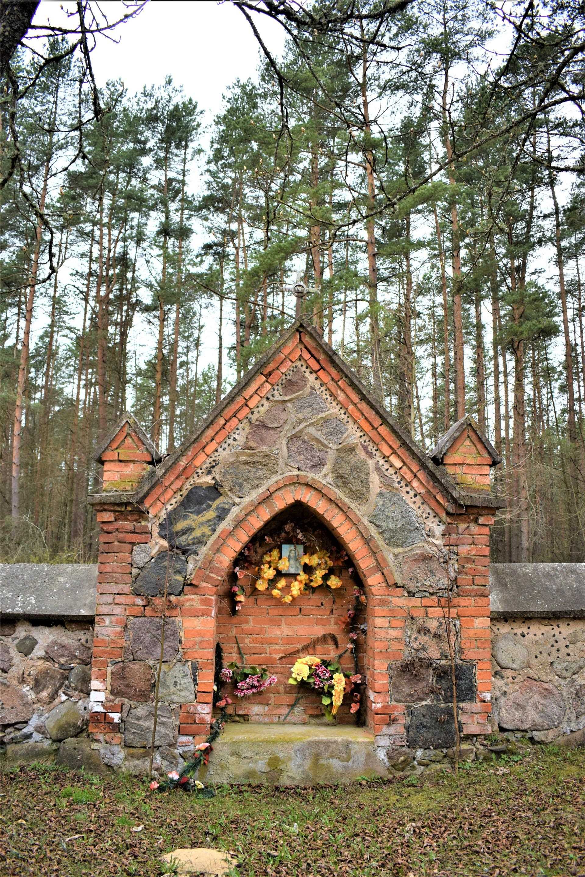 Тэрыторыя касцёла абнесена бутавай агароджай з брамай і каліткамі. На восі галоўнага фасада касцёла знаходзіцца трохпралётная брама, якую складаюць чатыры пілоны.