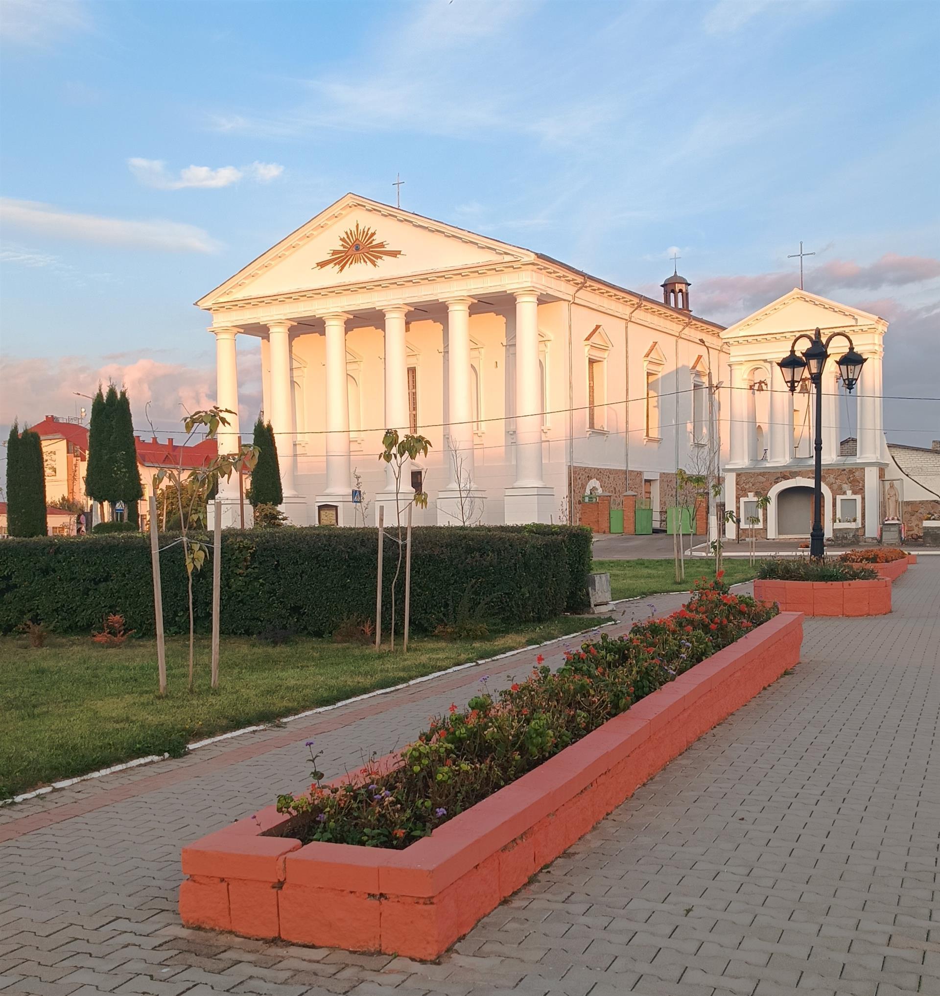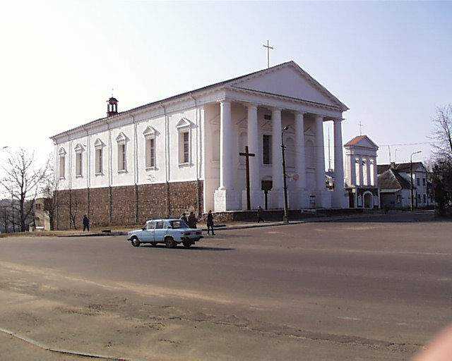 Касцёл знаходзіцца на плошчы Свабоды. Прамавугольны ў плане будынак накрыты двухсхільным дахам. Высокі цокаль з каменю. Галоўны фасад вылучаны шасцікалонным з трохвугольным франтонам порцікам дарычнага ордэра.
