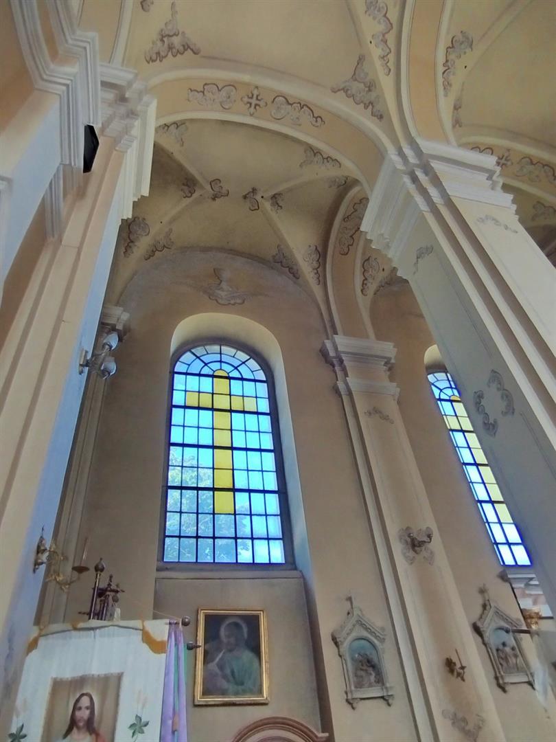 Прыходскі Крыжаўзвіжанскі касцёл пабудаваны ў 1765-1770 гг. па праекту віленскага архітэктара Іагана Хрыстафора Глаўбіца, аўтара шматлікіх архітэктурных пабудоў, як на тэрыторыі Беларусі так і ў Літве. Праект Лідскага касцёла – яго апошняя работа. Ініцыявалі будаўніцтва касцёла біскупы Тамаш і Міхаіл Зянковічы.
