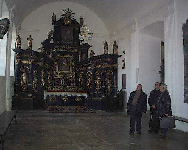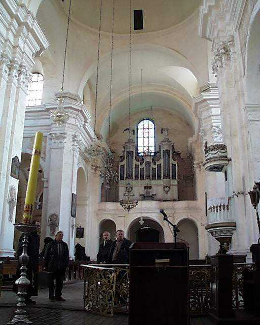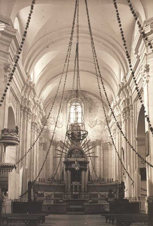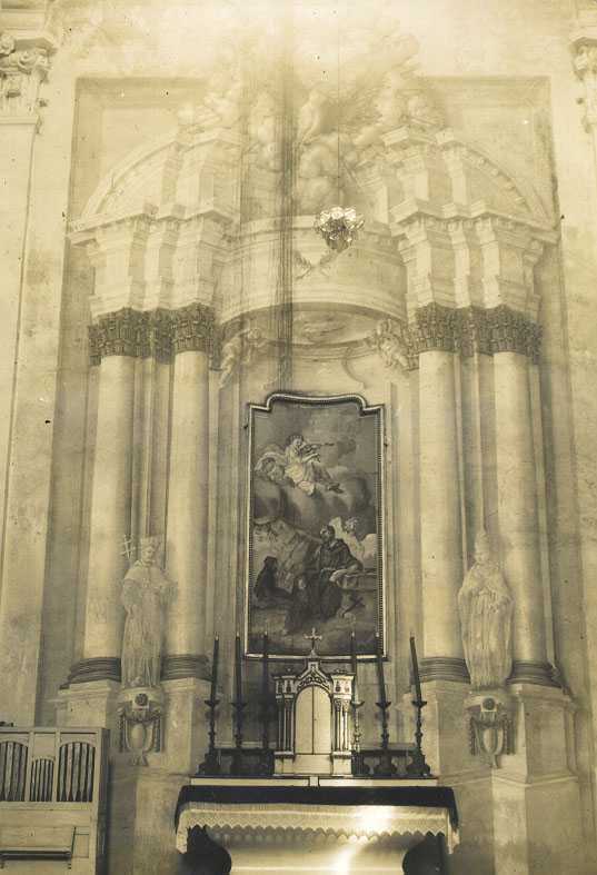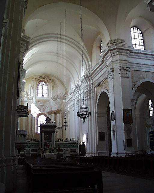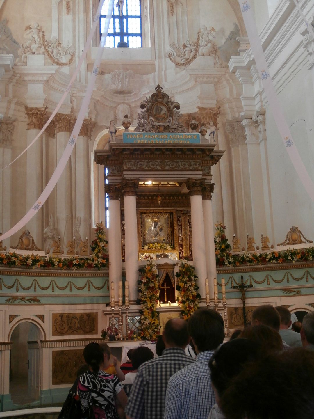 Касцёл меў 12 алтароў. У галоўным алтары быў змешчаны абраз Мадонны, які паходзіў з палацавай капліцы Яна Паца, віленскага ваяводы. Ян Пац атрымаў гэты абраз ад папы Клімента VIII. Пасля яго смерці ў 1613 г. абраз быў перададзены бернардзінцам.