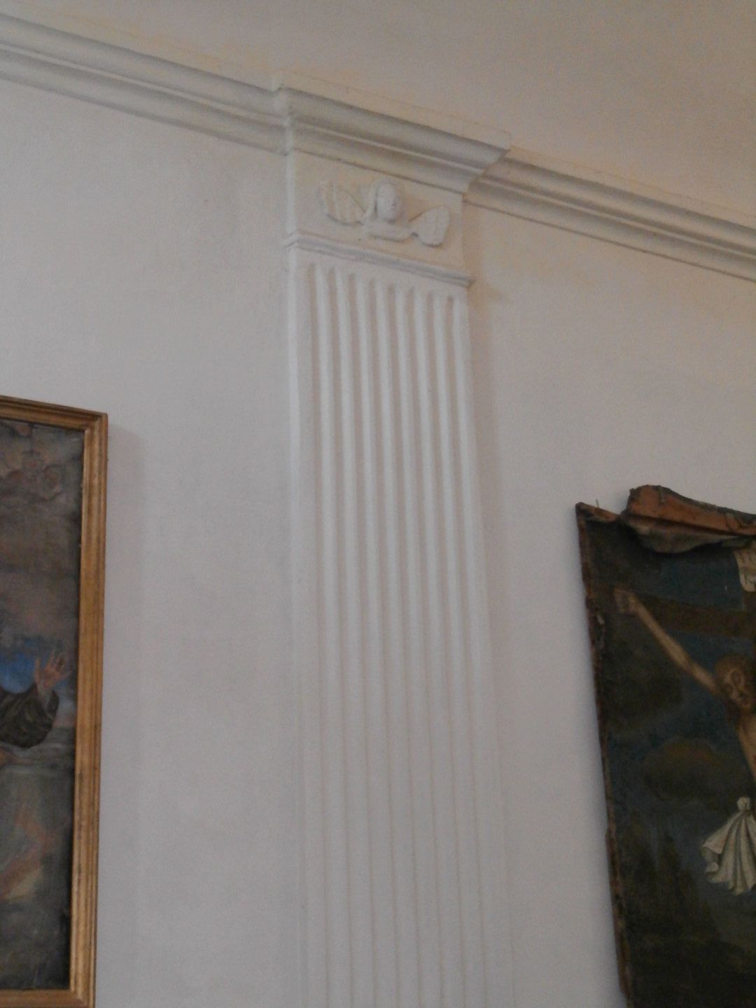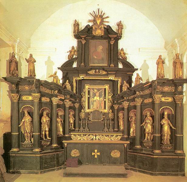 Пад касцёлам маецца падвал, памяшканні якога перакрыты крыжовымі скляпеннямі з падпружнымі аркамі. Раней у нішах у сценах падвала адбываліся пахаванні.