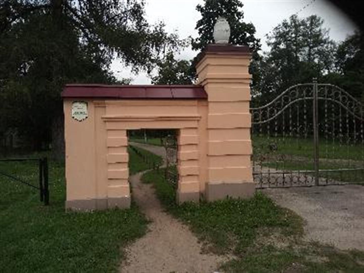 Галоўны ўезд у сядзібу быў аформлены брамай у выглядзе невысокіх цагляных пілонаў і прымыкаючых да іх сцен, у якіх былі зроблены праёмы калітак. Пілоны брамы вырашаны ў простых, лаканічных архітэктурных формах. У іх дэкоры выкарыстаны руст і нескладанага профілю архітэктурныя абломы.