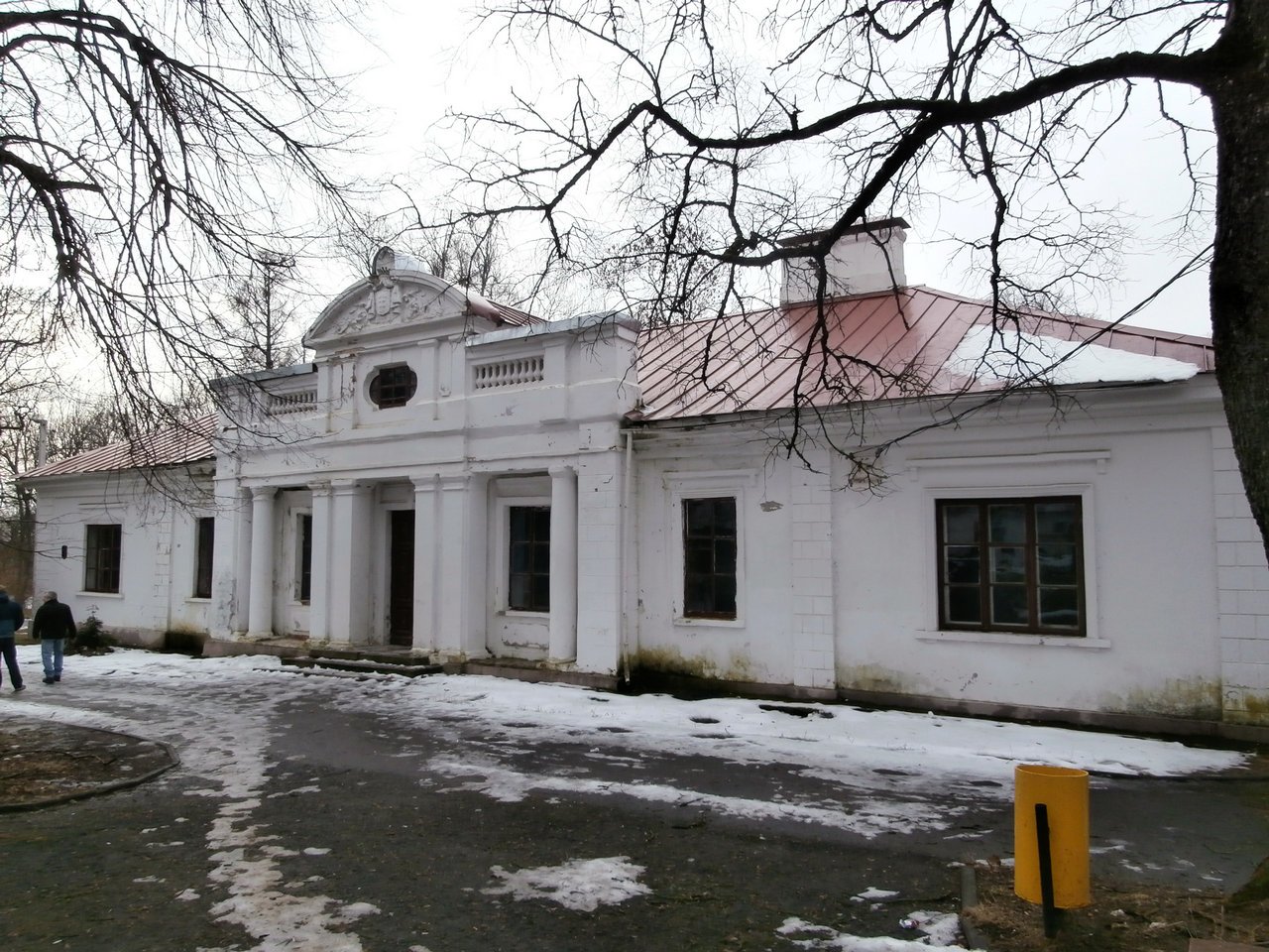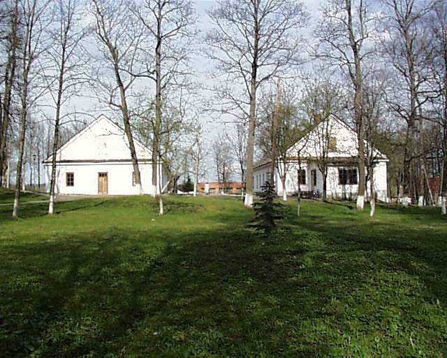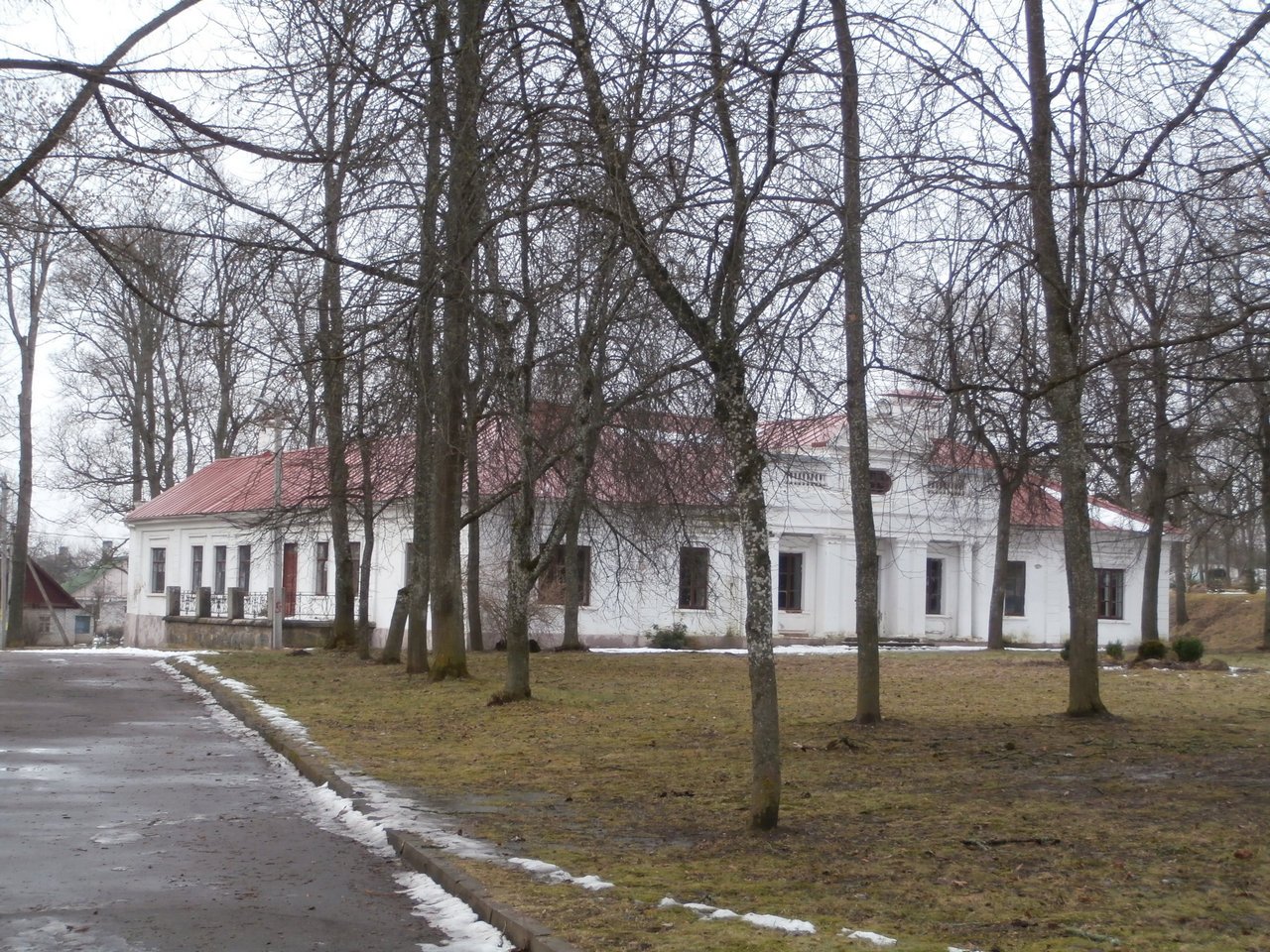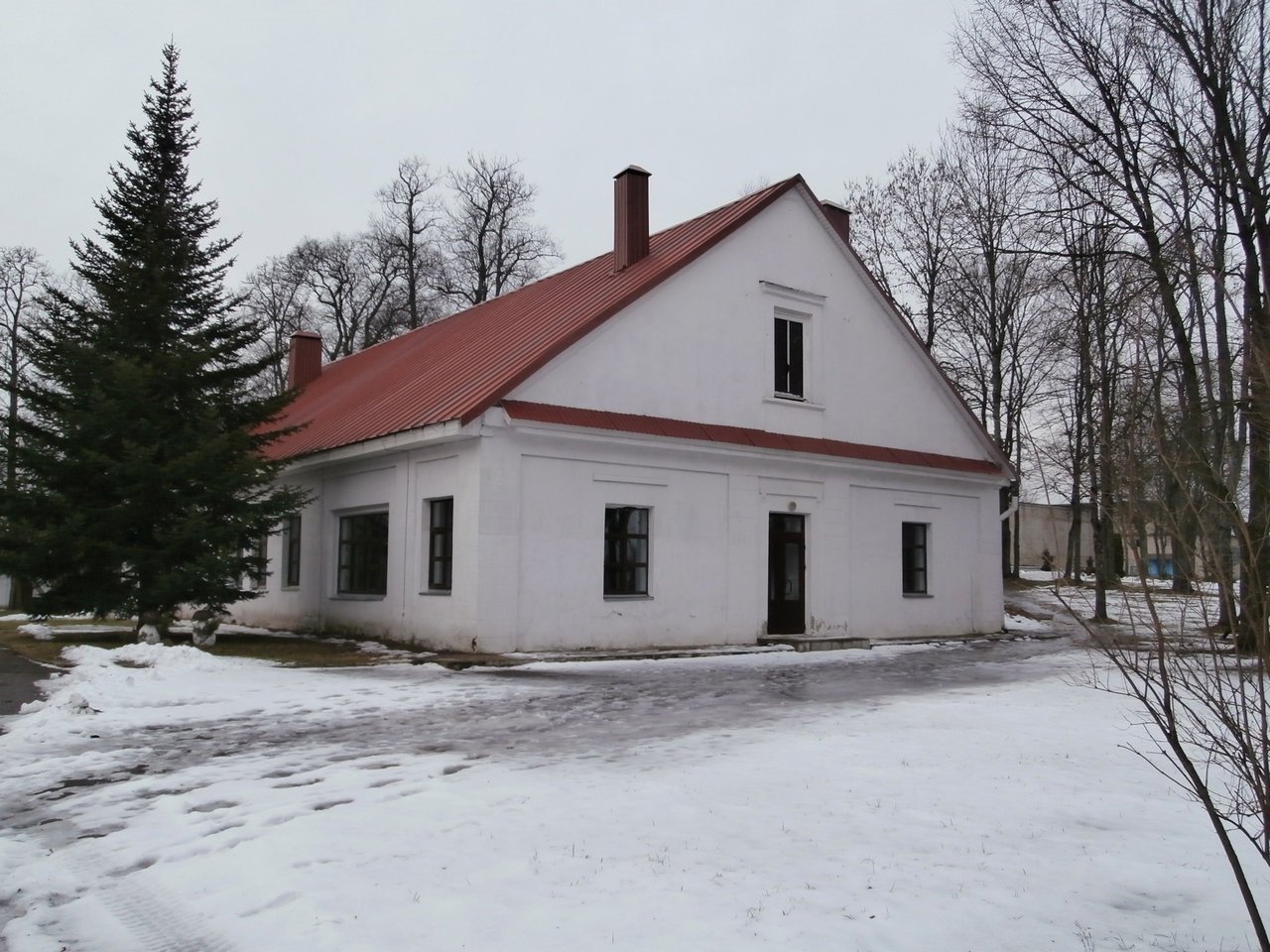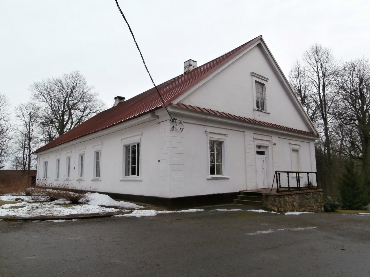 Насупраць сядзібнага дома размешчаны два аднатыпныя службовыя флігелі. Як паказалі натурныя даследванні, адзін з флігеляў стаіць на падмурках раней існаваўшага будынка. Аднак звестак аб больш ранняй забудове сядзібы не захавалася. У пісьмовых крыніцах толькі ўпамінаюцца "господские" пабудовы, вінакурня і млын, існаваўшыя пры папярэдніх уладальніках. Свіран пабудаваны з бутавага каменю.